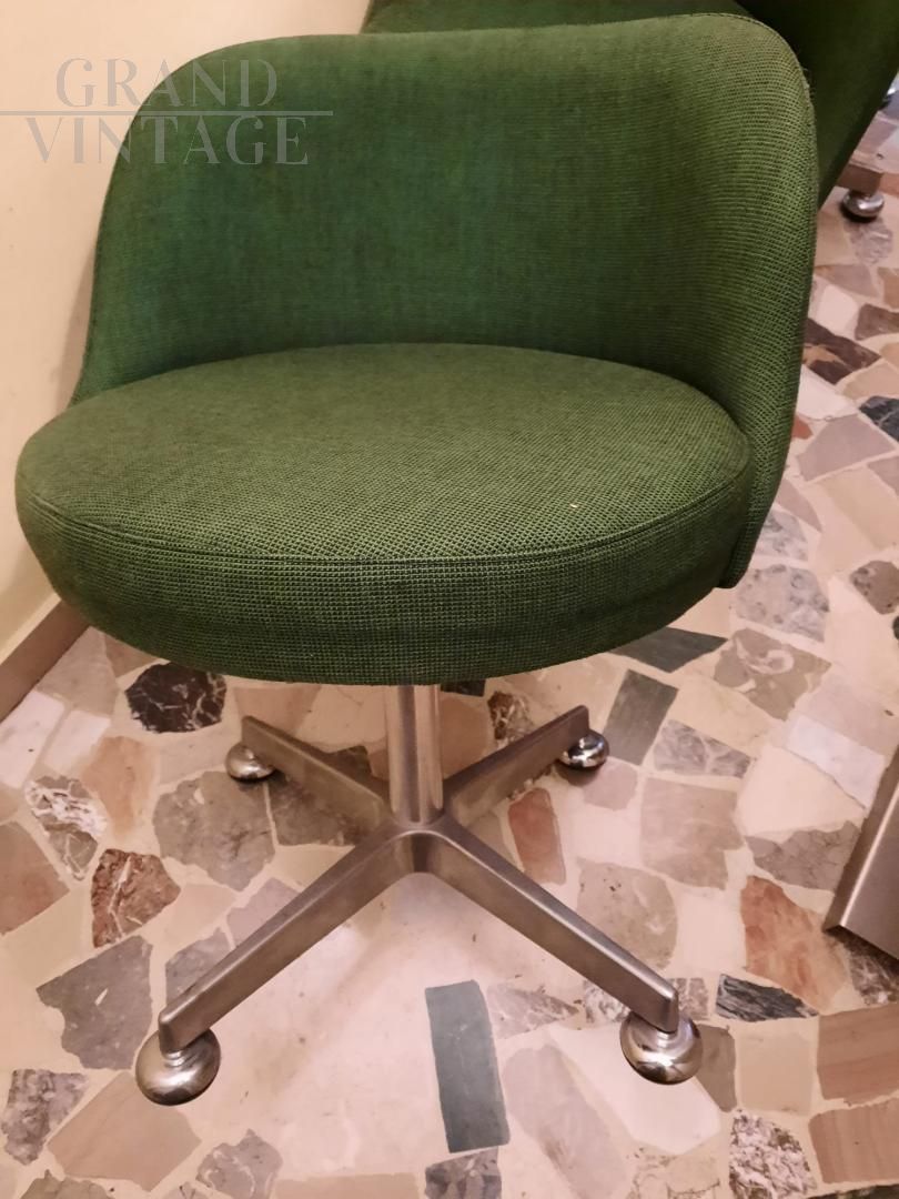 Set of 4 vintage swivel office armchairs in green fabric, with chrome structure. Comfortable and padded, in excellent condition, they show the natural signs of aging.