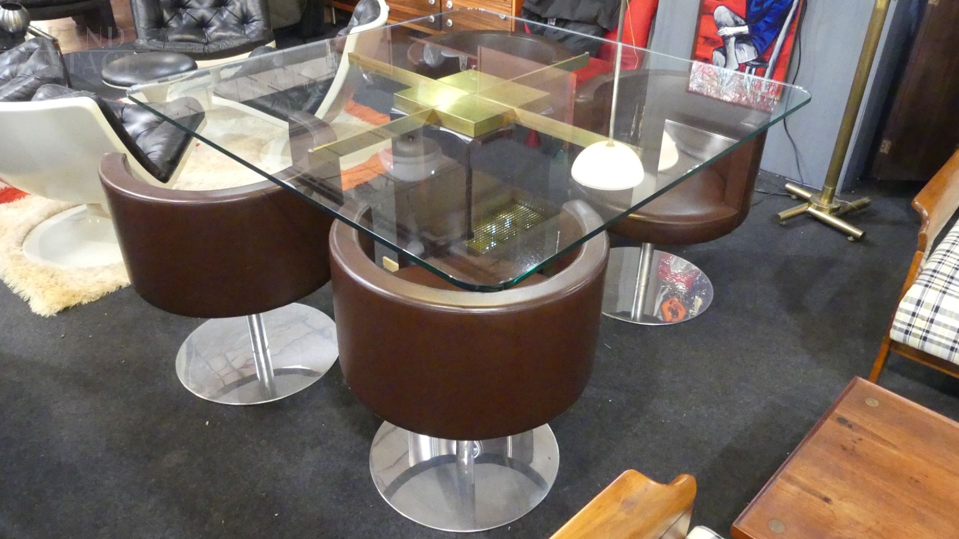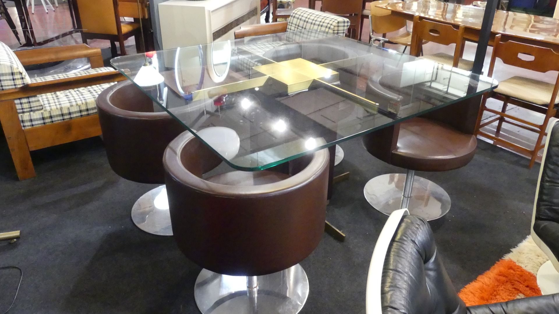 Set of 4 vintage swivel armchairs by Antonio Astori in brown skai