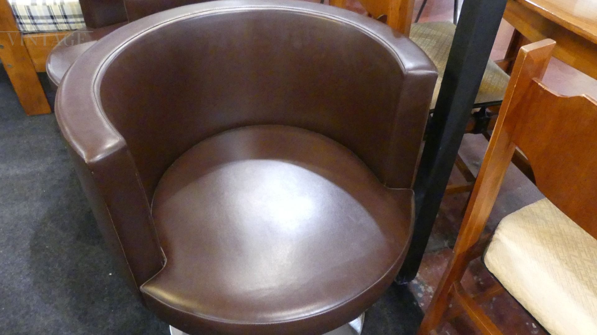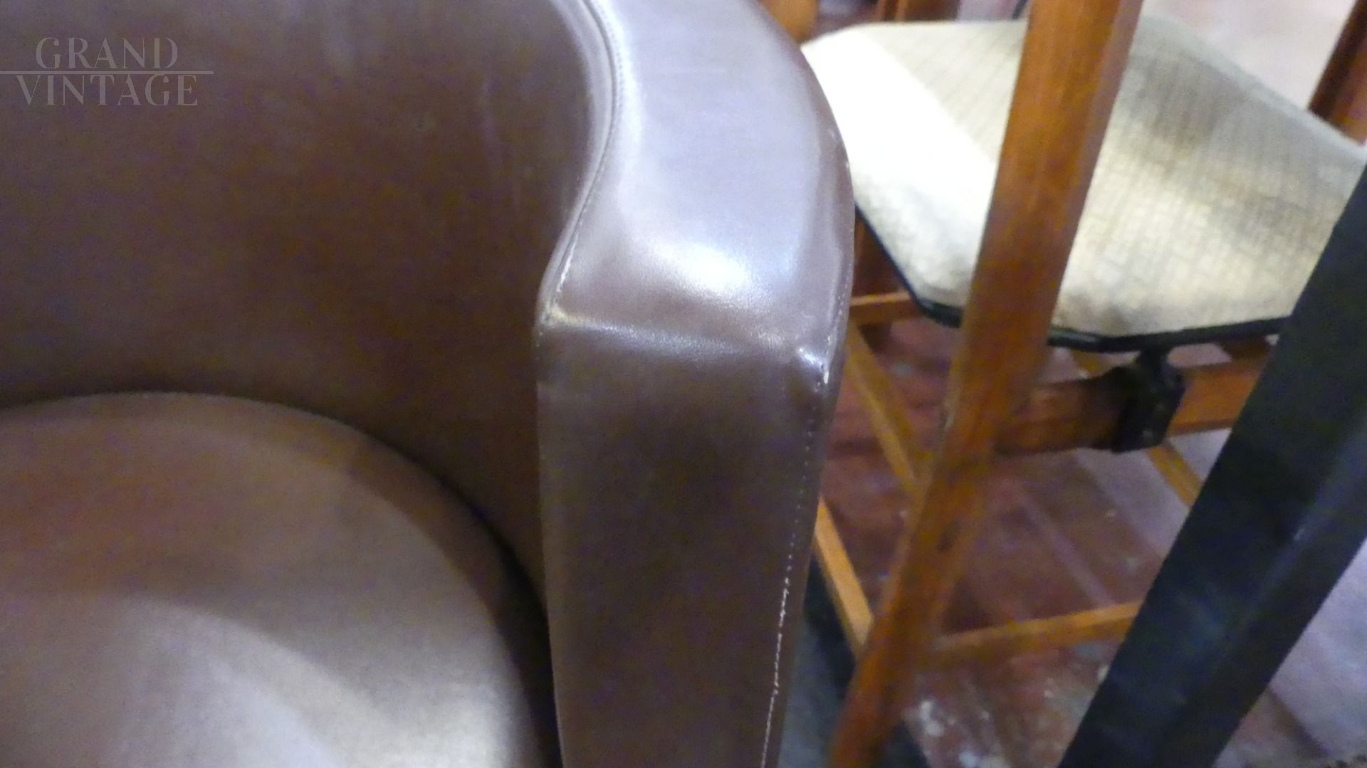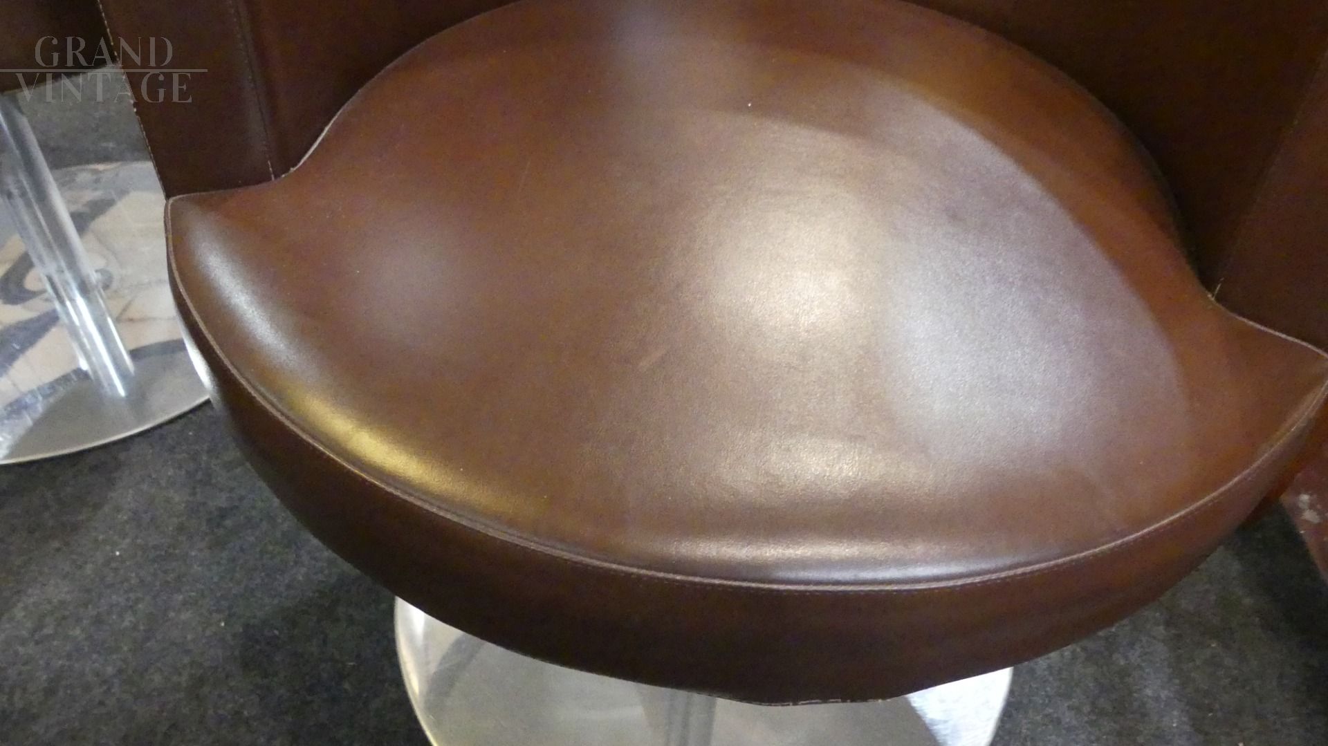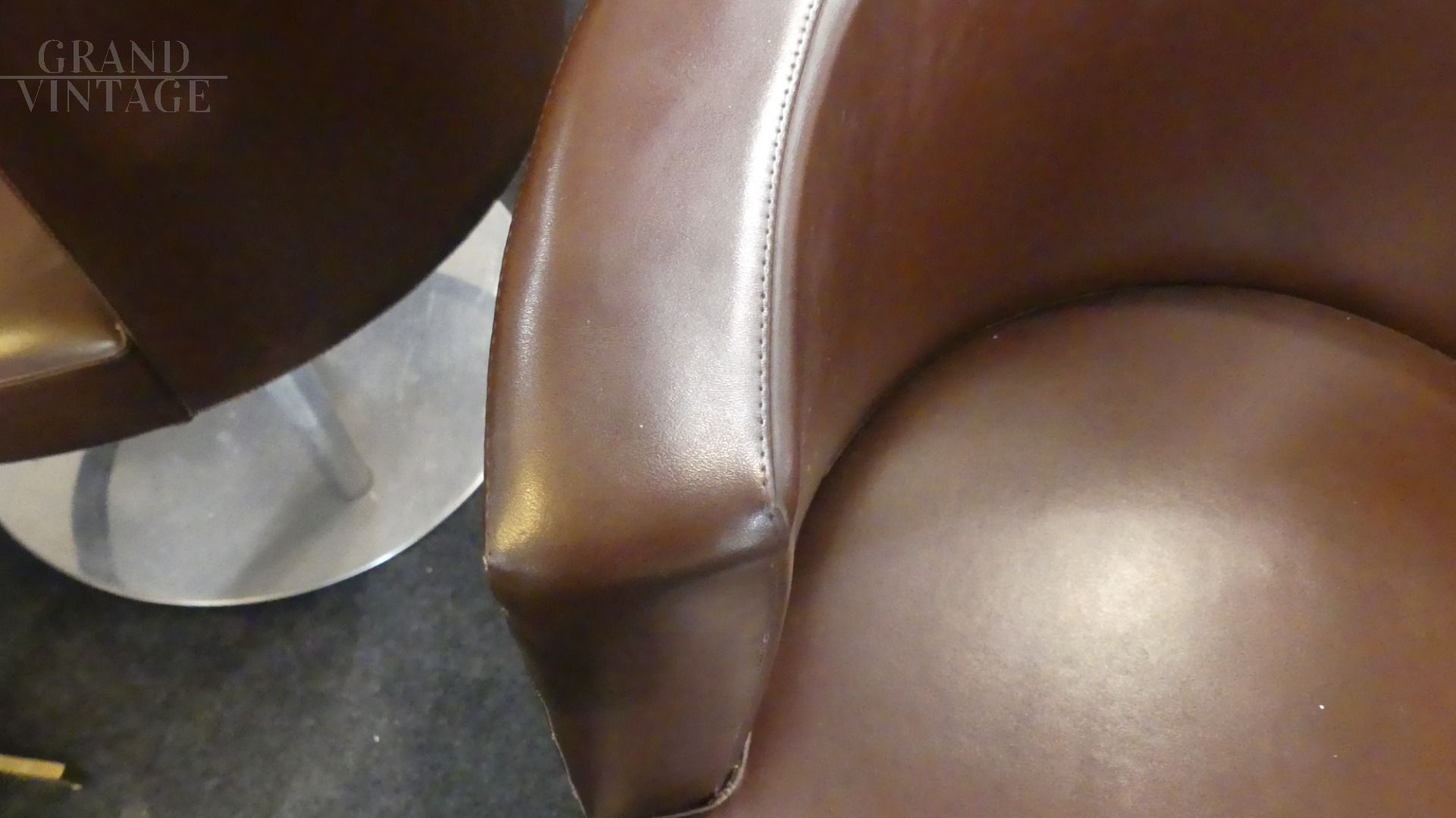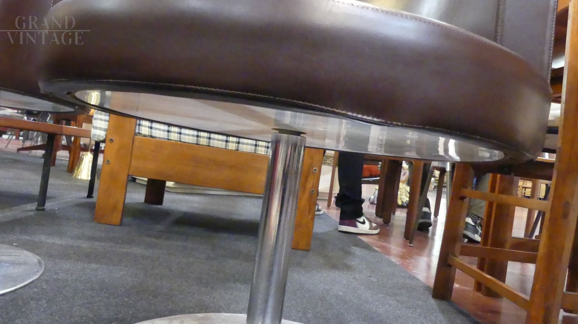 Set of 4 swivel armchairs by Antonio Astori for C2 in brown faux leather, 1960s, with round steel bases. The set is in excellent condition, it shows the natural signs of aging on the bases.