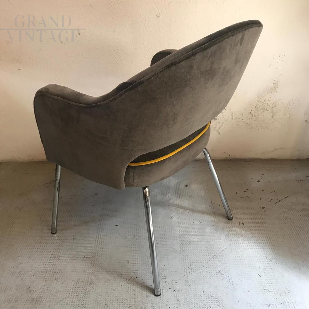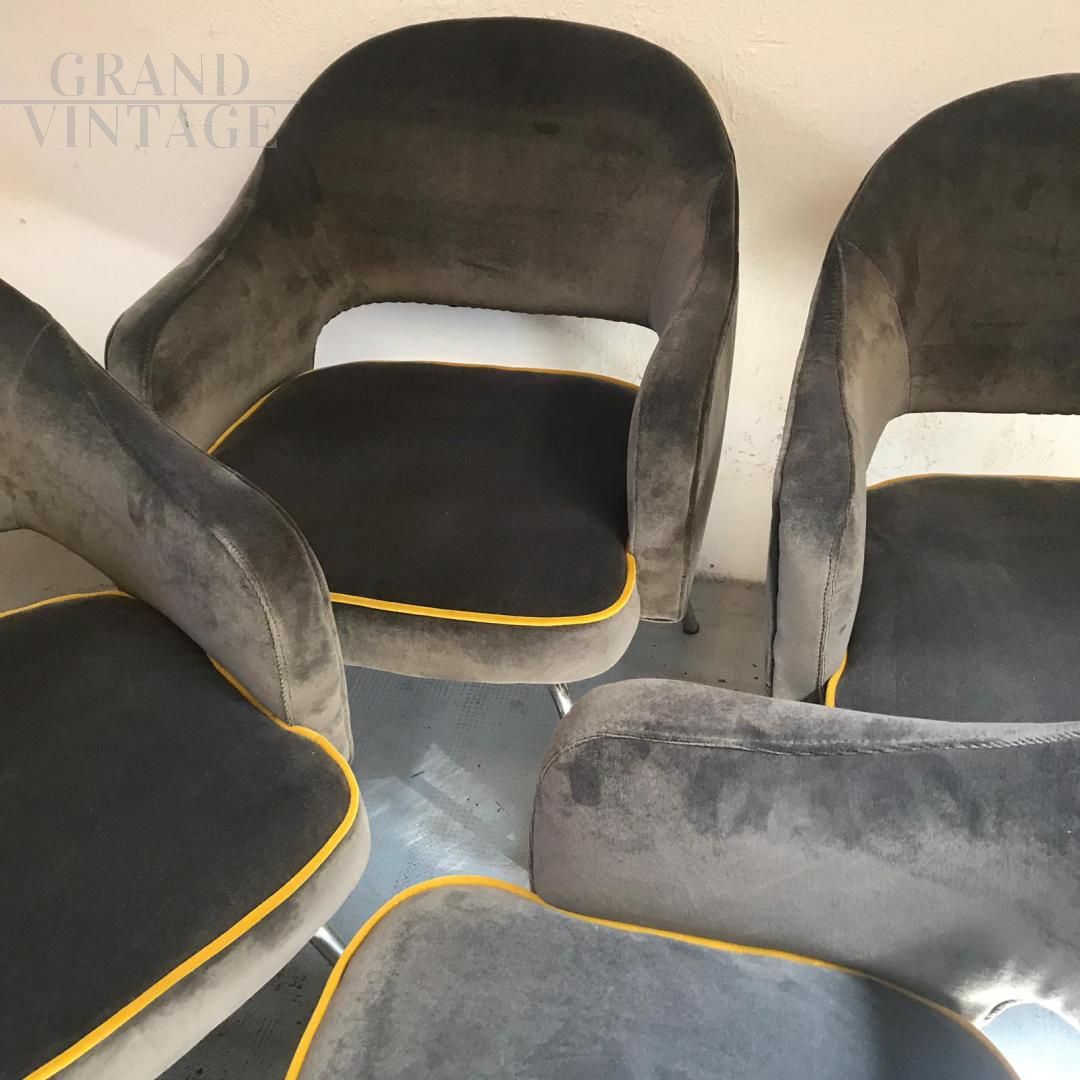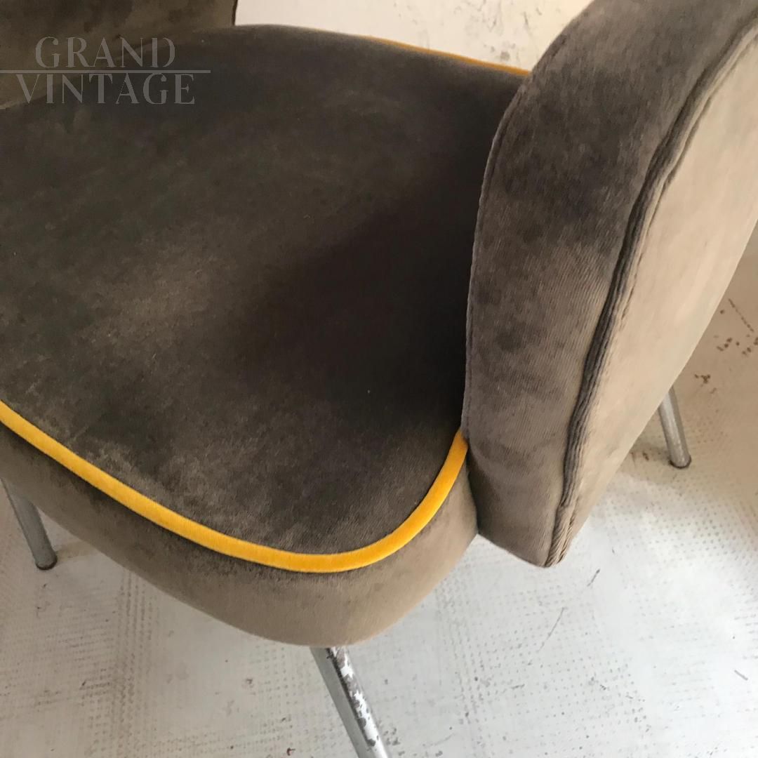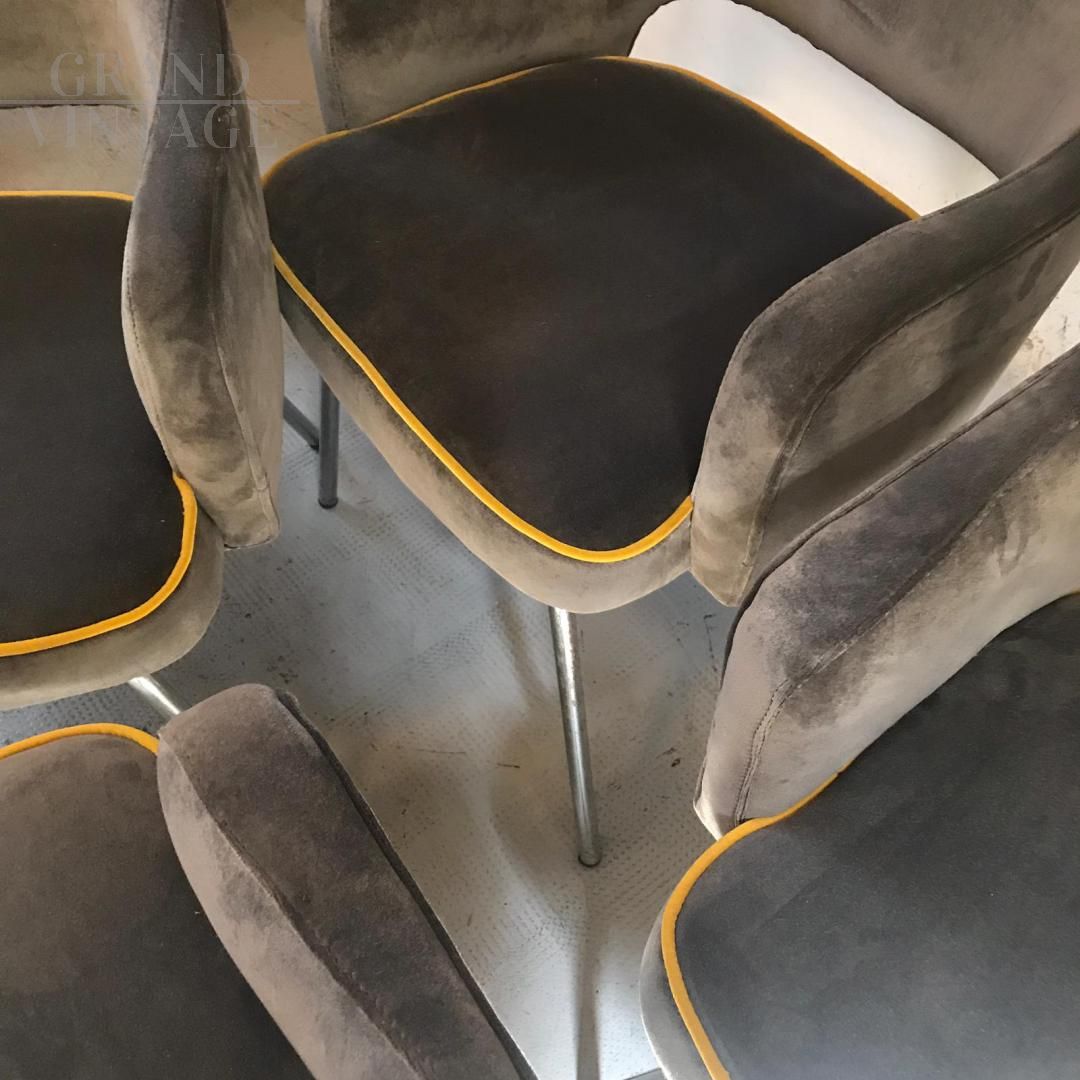 Beautiful set of 4 armchairs in dark gray velvet edged in yellow, Gastone Rinaldi style, just reupholstered.