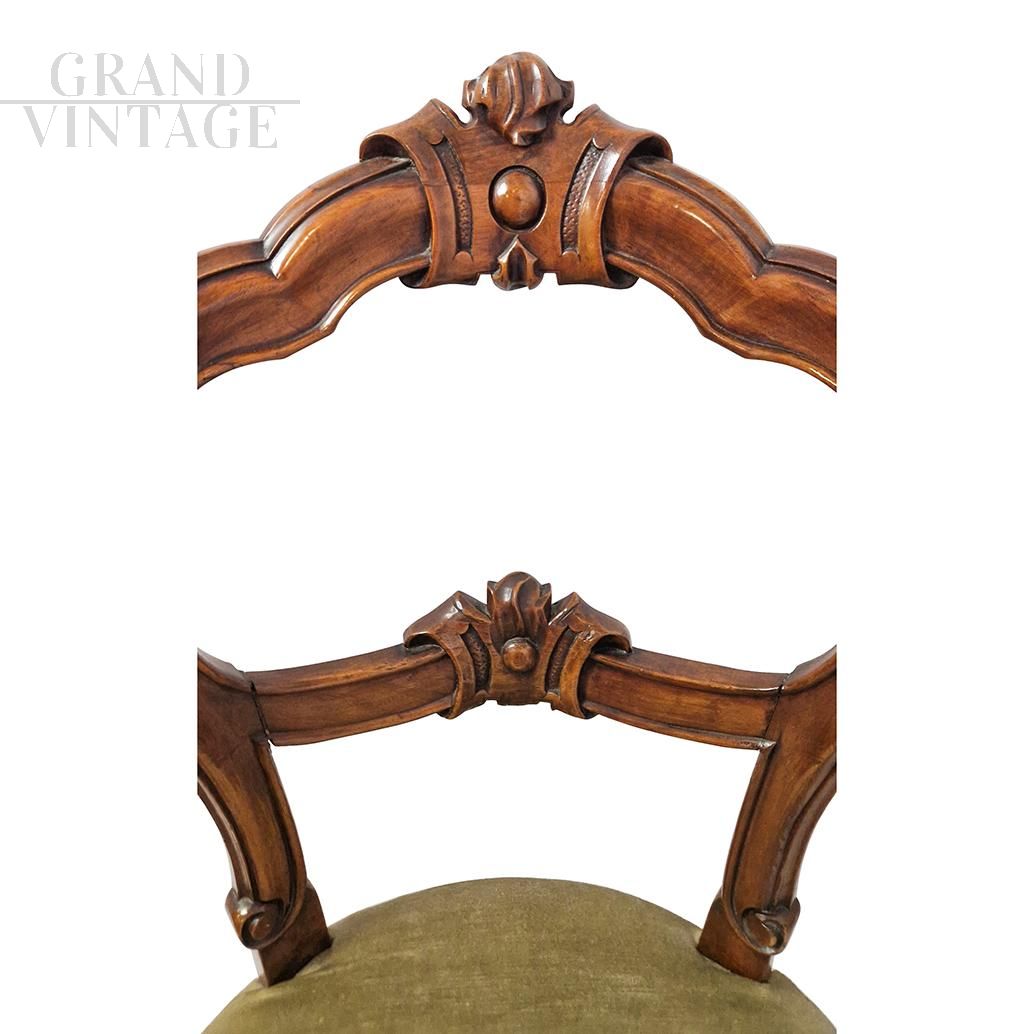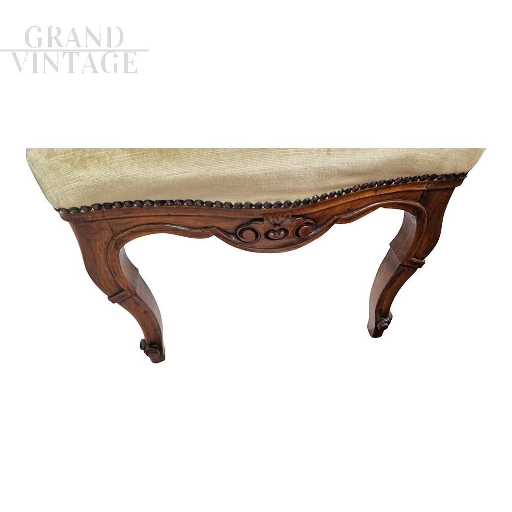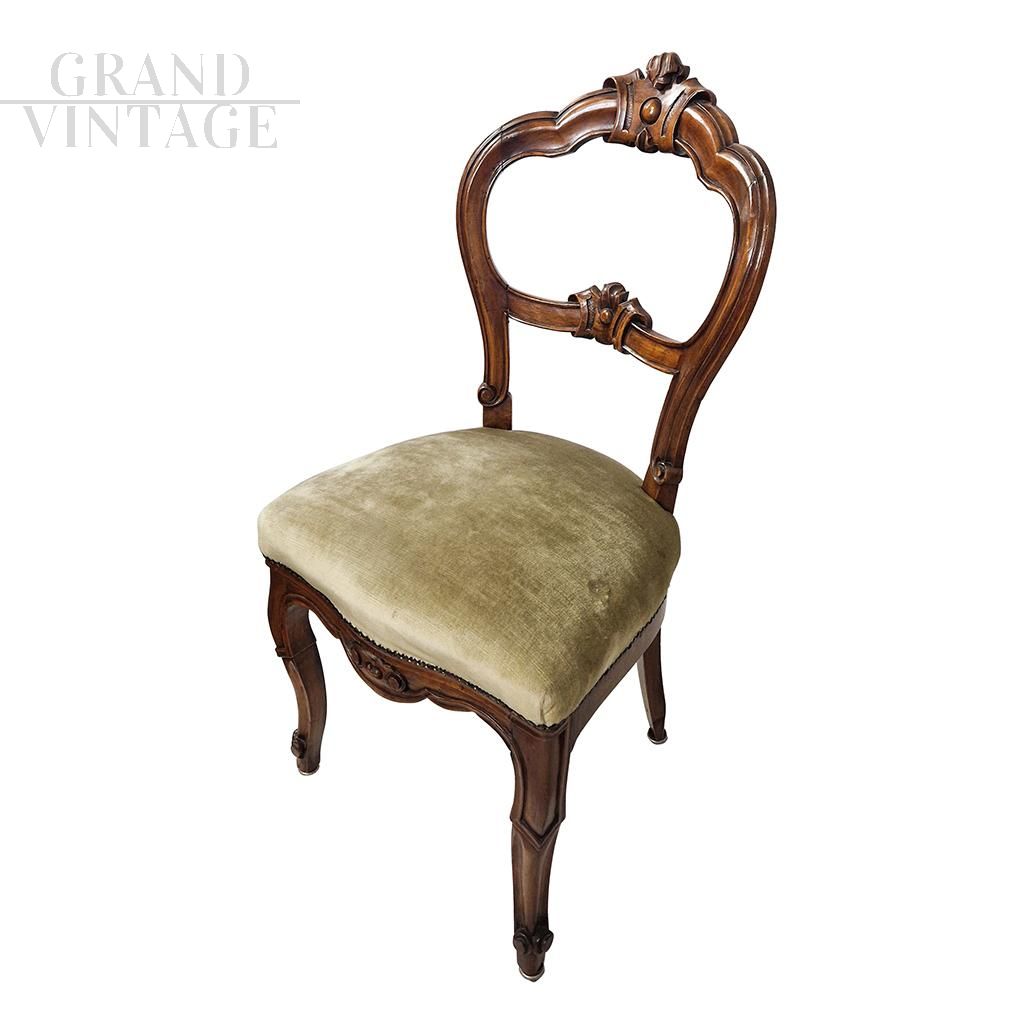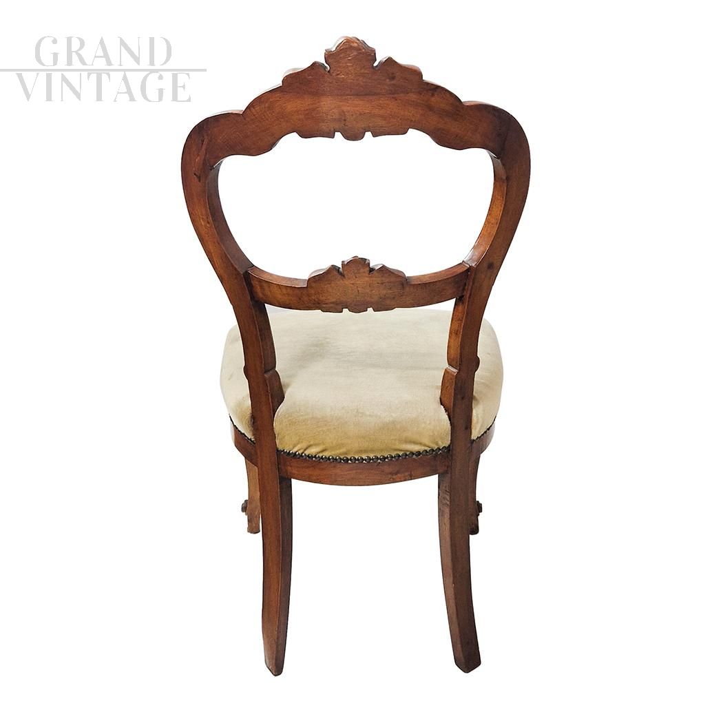Set of 5 antique Louis Philippe style wooden chairs with upholstered seat in original fabric of the time.