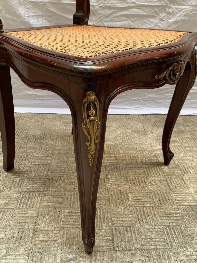 Set of 6 antique chairs from the late 19th century in mahogany with pure bronze details and with Vienna straw seat, restored and in excellent condition.