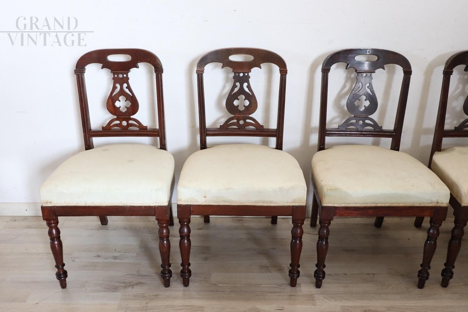 Set of 6 antique English mahogany chairs from the 19th century with padded seats