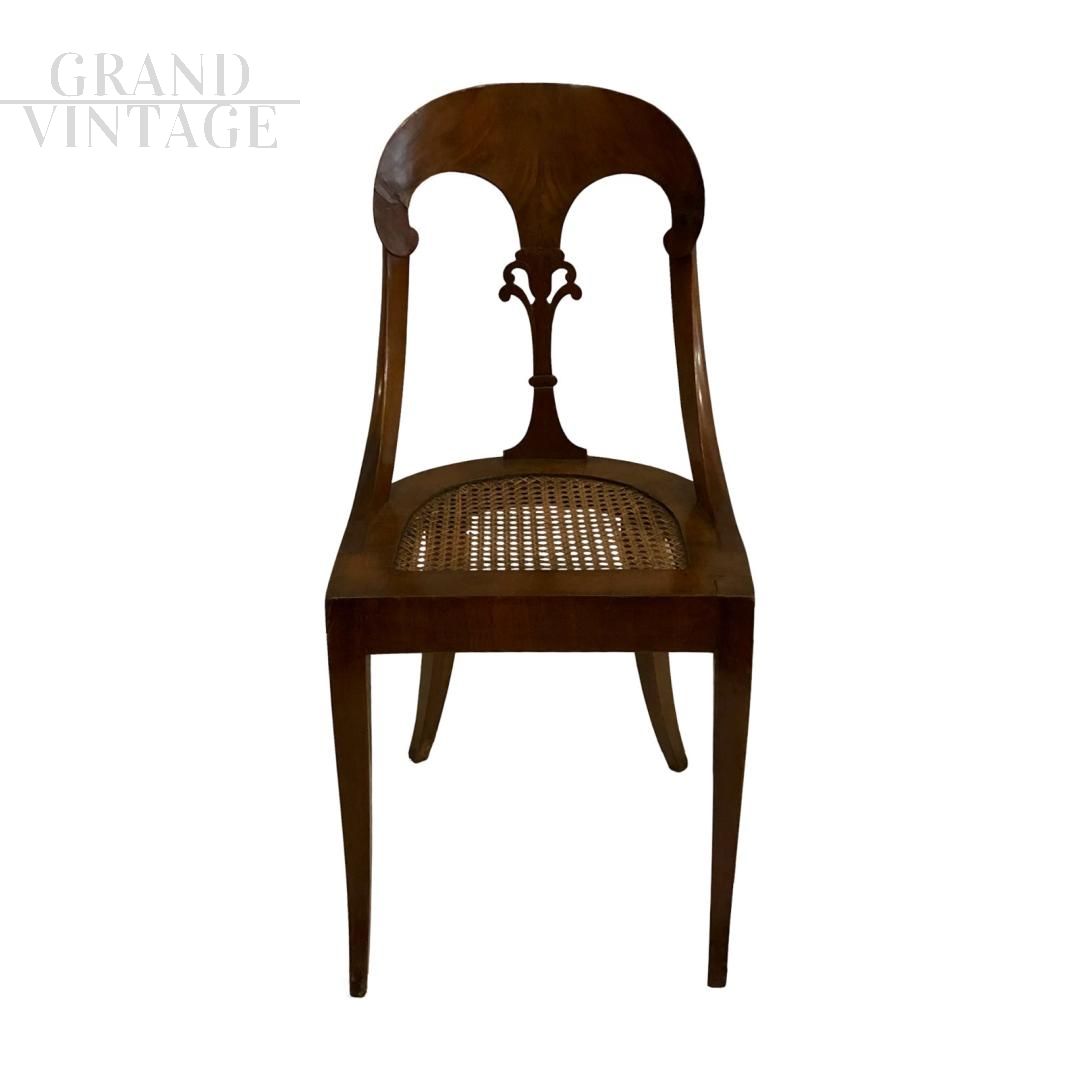 Group of 6 Biedermeier style chairs from 1820 - 1830 veneered in walnut, with Vienna straw seat.