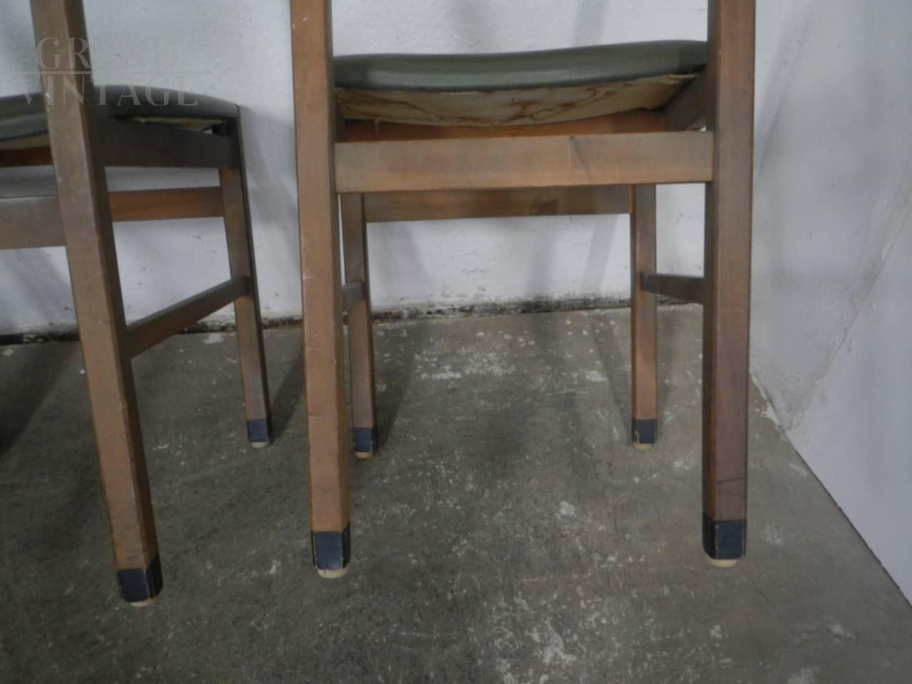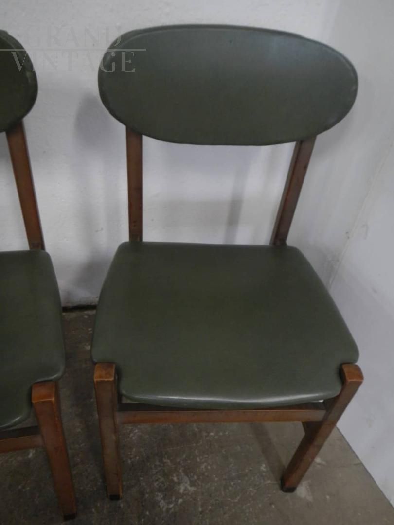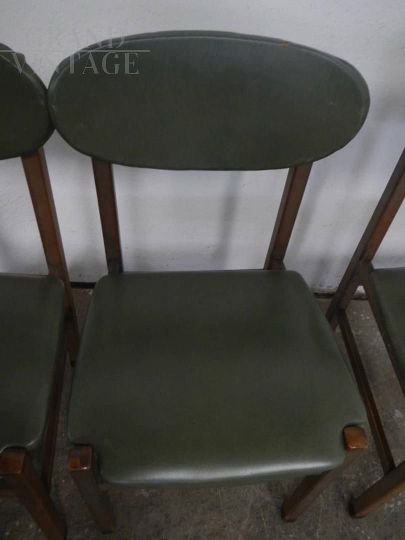 Set of 6 beech wood chairs with green faux leather seats. The structure is good but the upholstery has various defects.