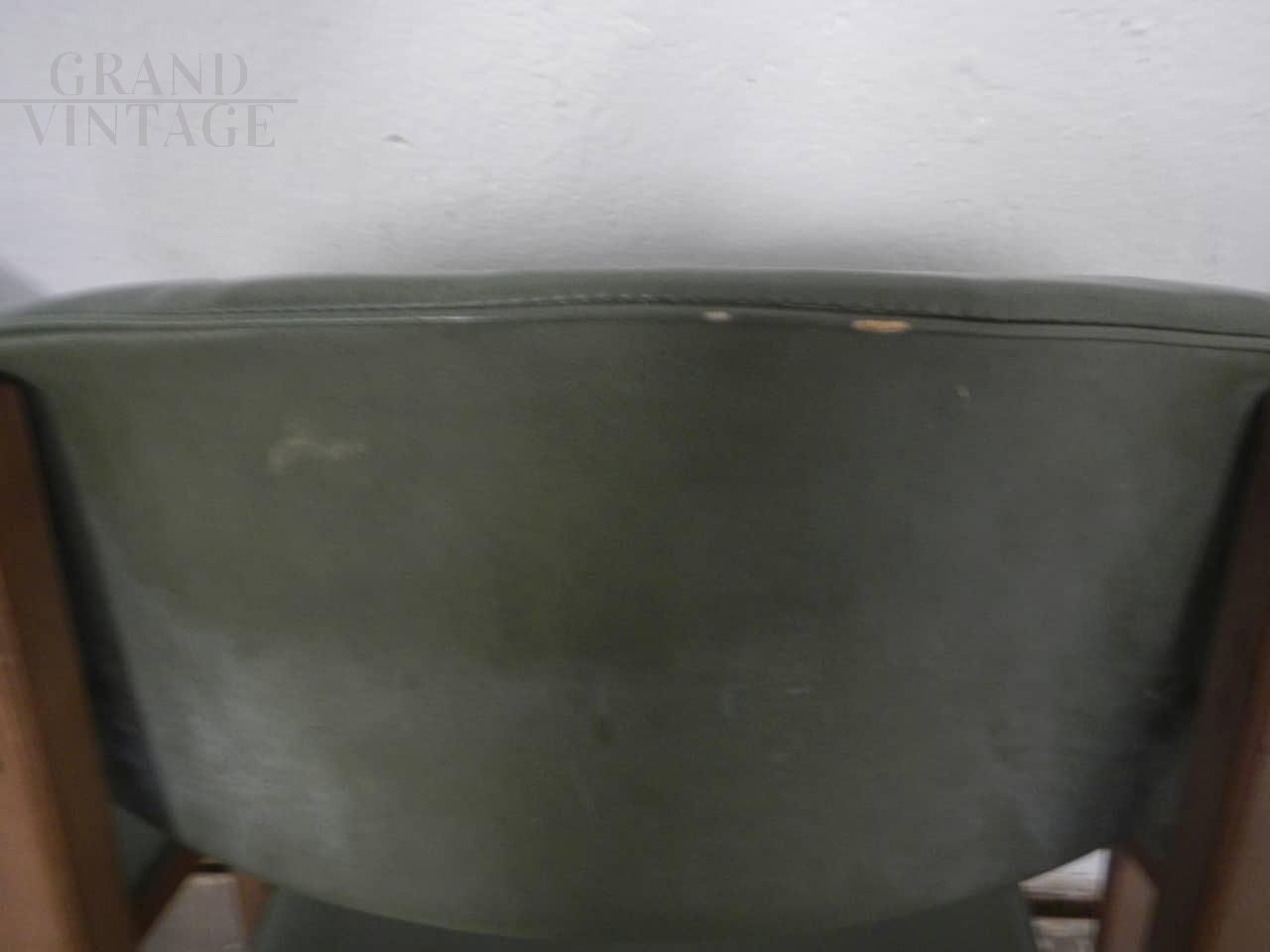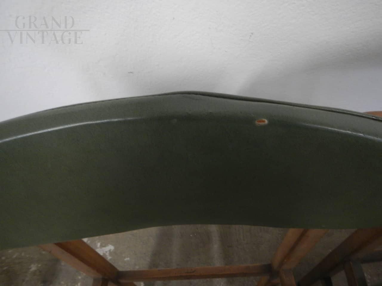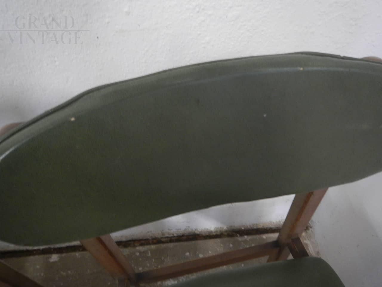 Set of 6 beech wood chairs with green faux leather seats. The structure is good but the upholstery has various defects.