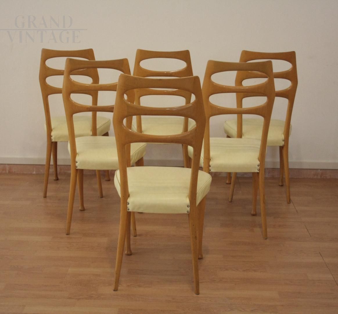 Set of 6 dining chairs by Vittorio Dassi, Italian mid-century modern design