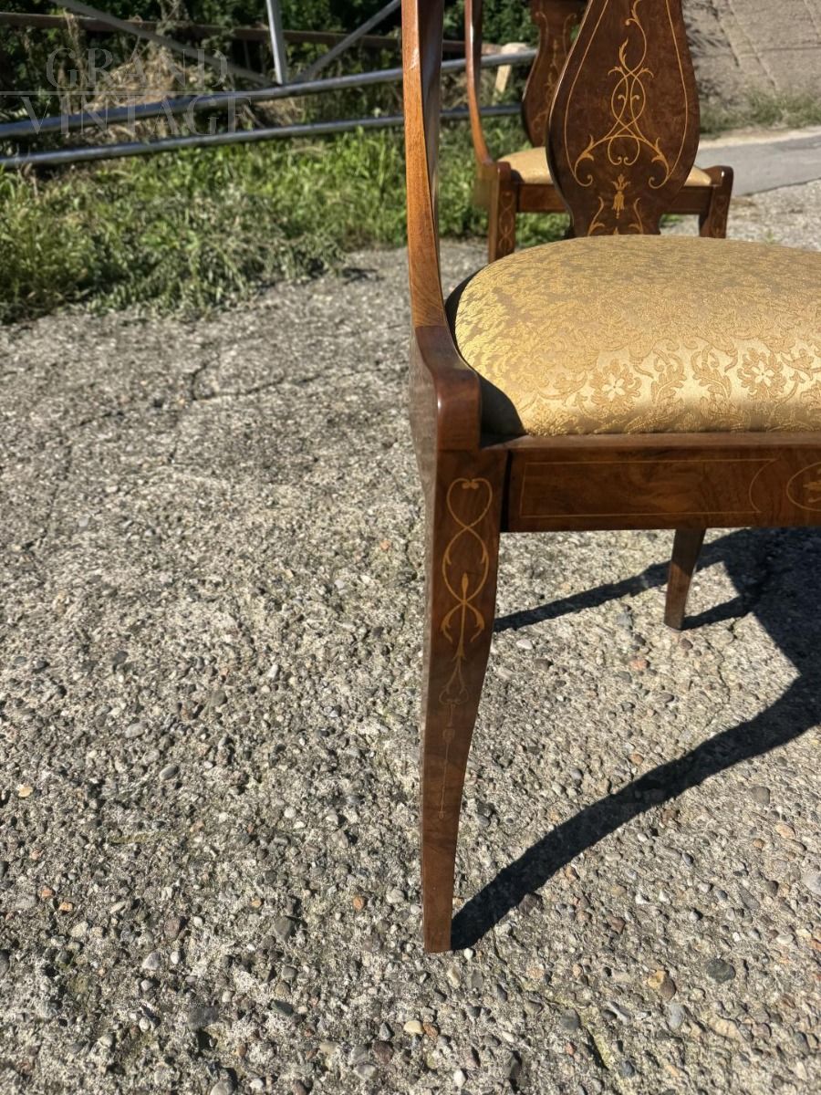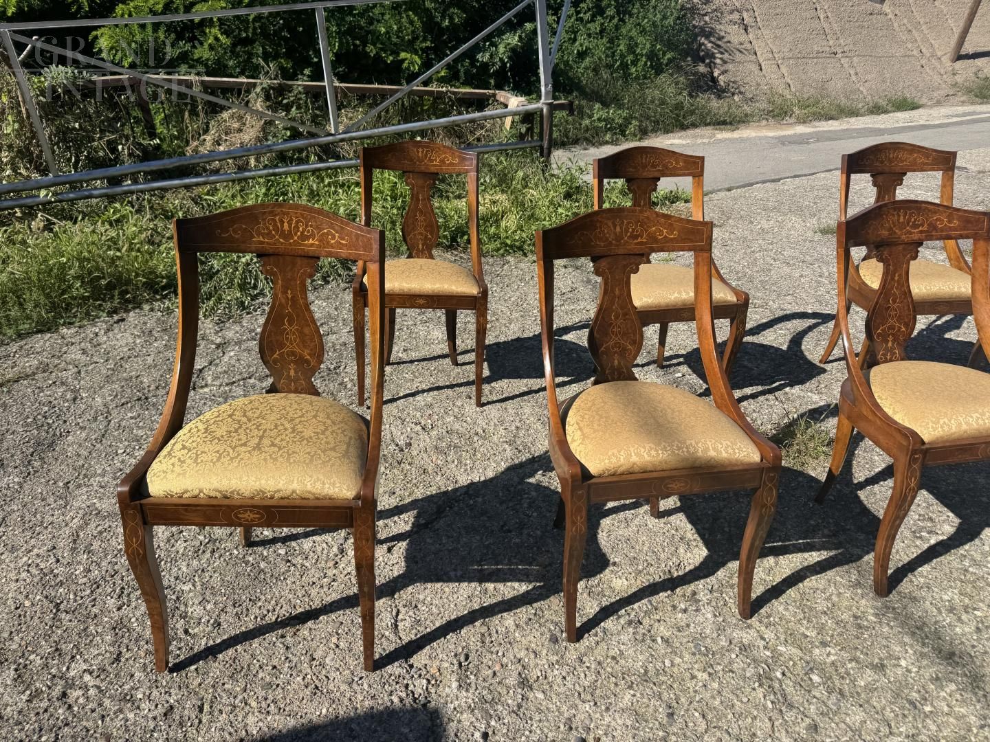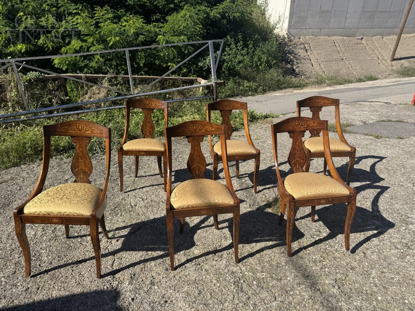 Set of 6 Palladian walnut chairs with neoclassical inlays