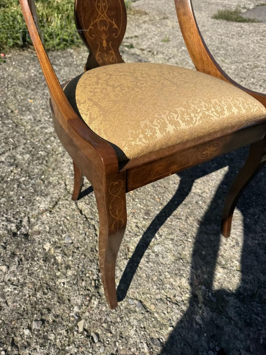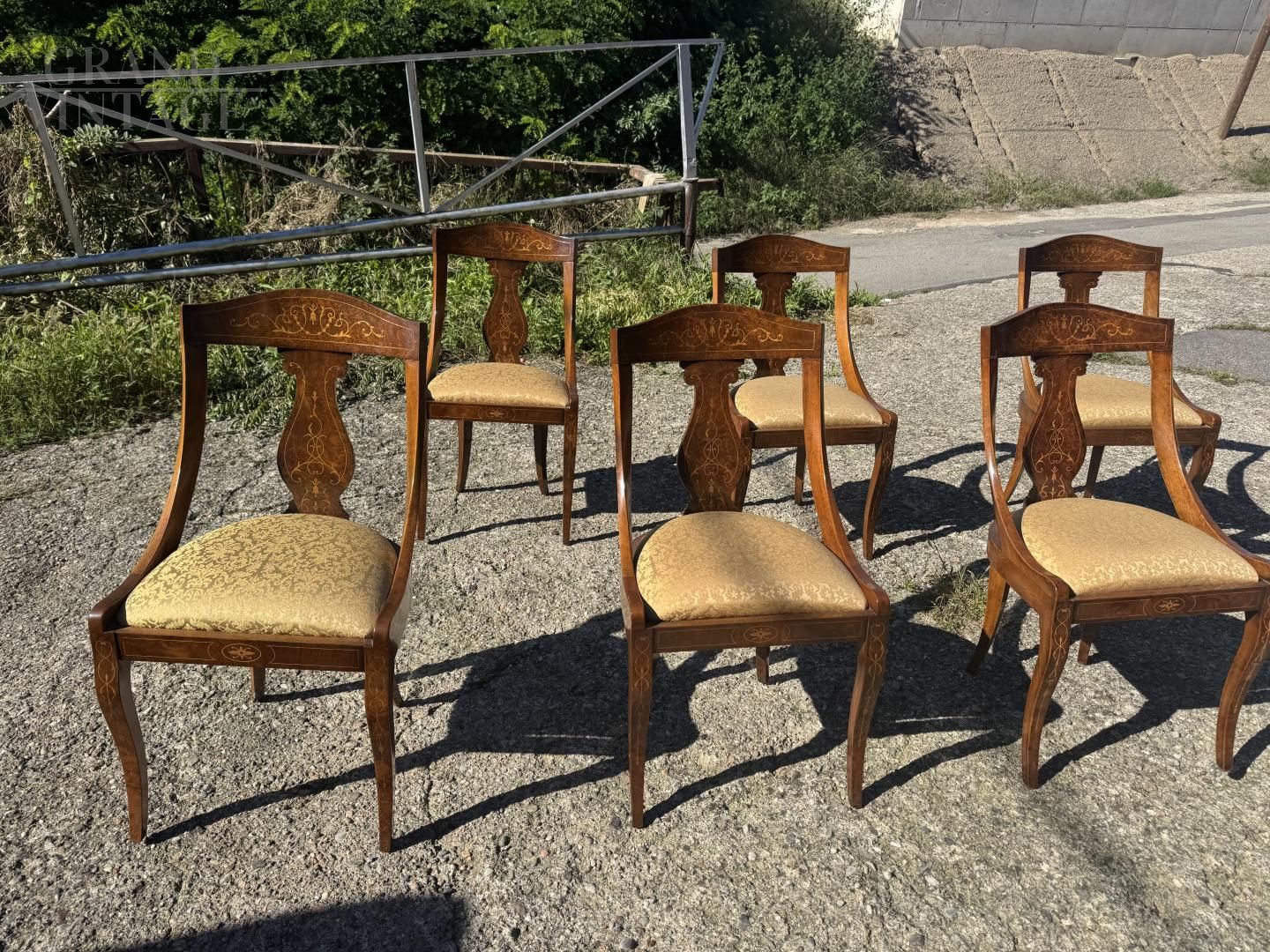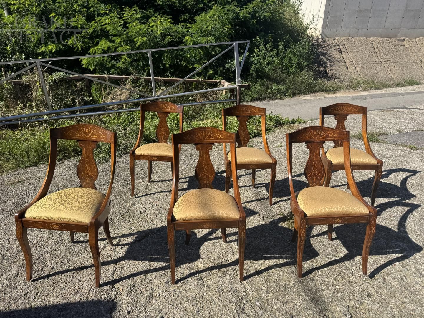 Set of 6 Palladian walnut chairs with neoclassical inlays