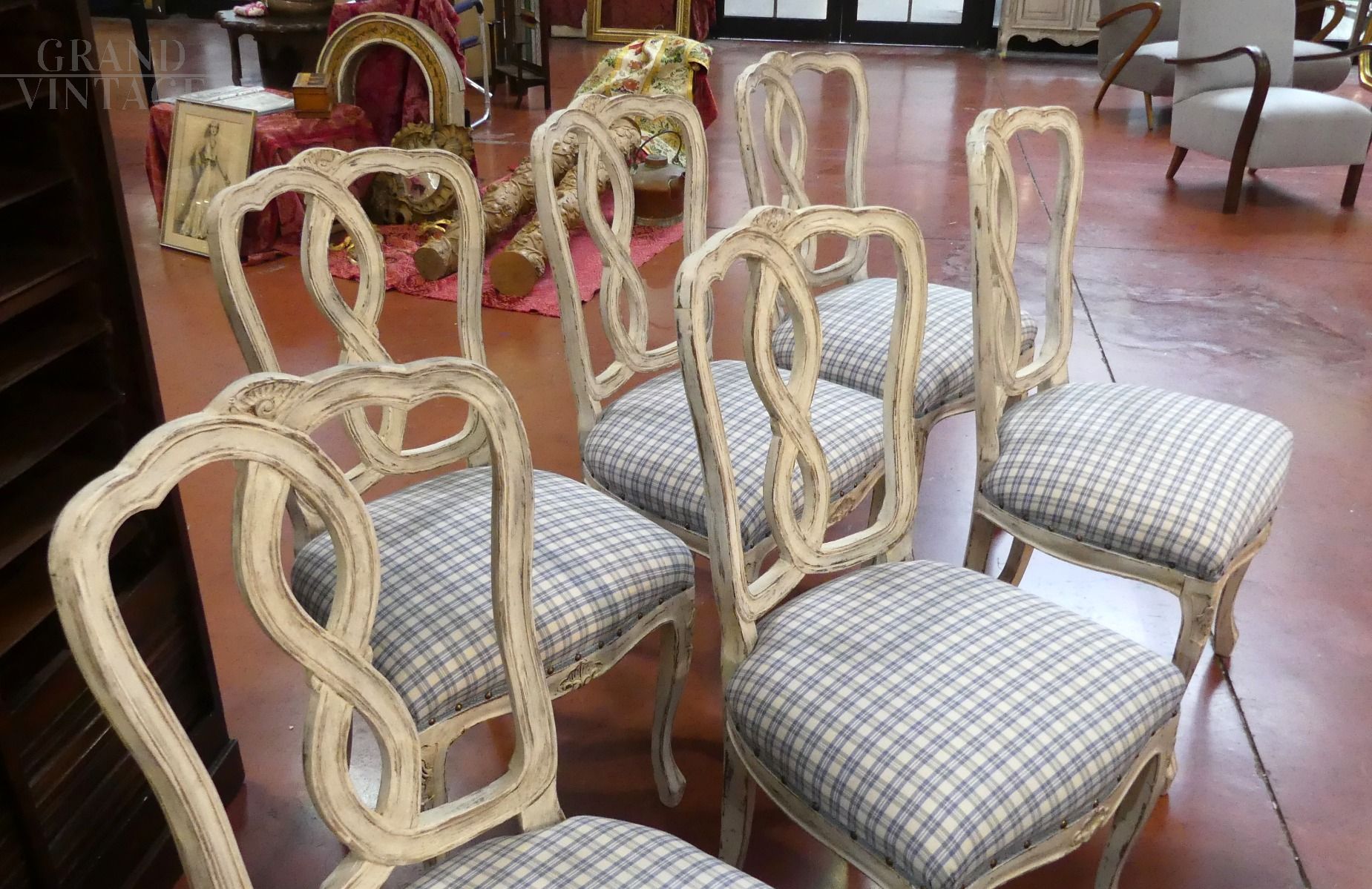 Set of 6 vintage 50s shabby chic chairs