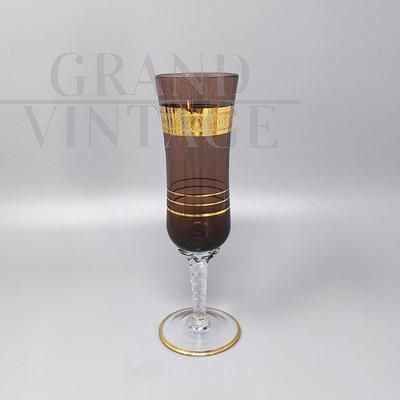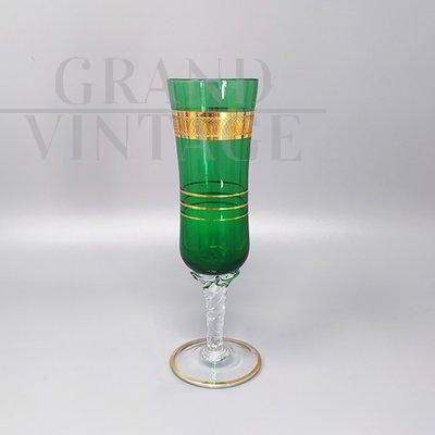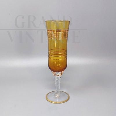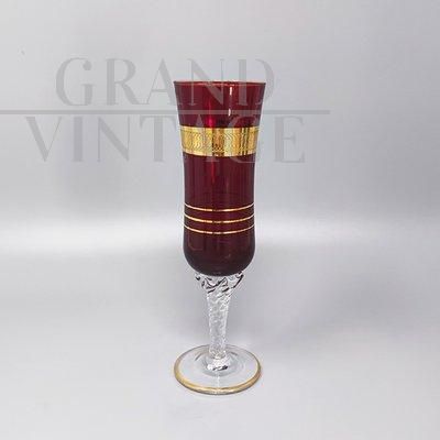 Set of 6 vintage colored Murano glass glasses with gold thread, Italy 1960s