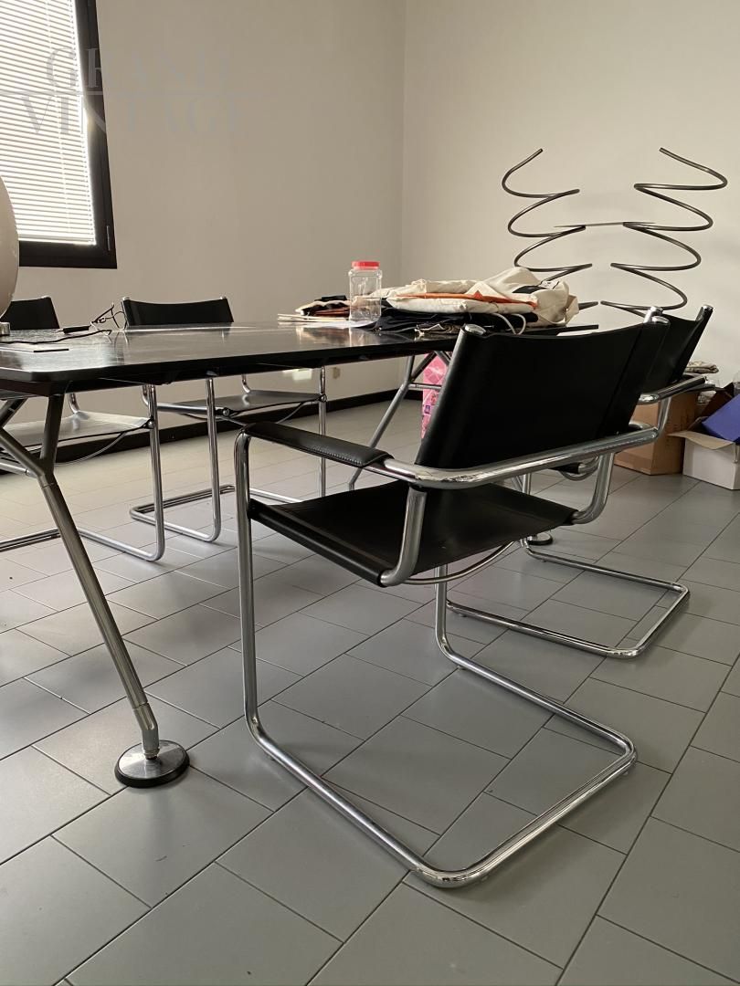 Set of 8 design office chairs by Matteo Grassi in chromed metal and genuine black leather, Italian vintage from the 1990s, in perfect condition, like new. Price negotiable.