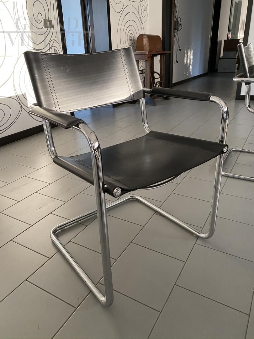 Set of 8 cantilever chairs by Matteo Grassi in black leather