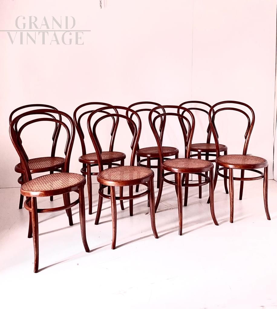 Set of 8 Thonet style chairs in bent beech, Joseph Hofmann, Austria, early 1900s