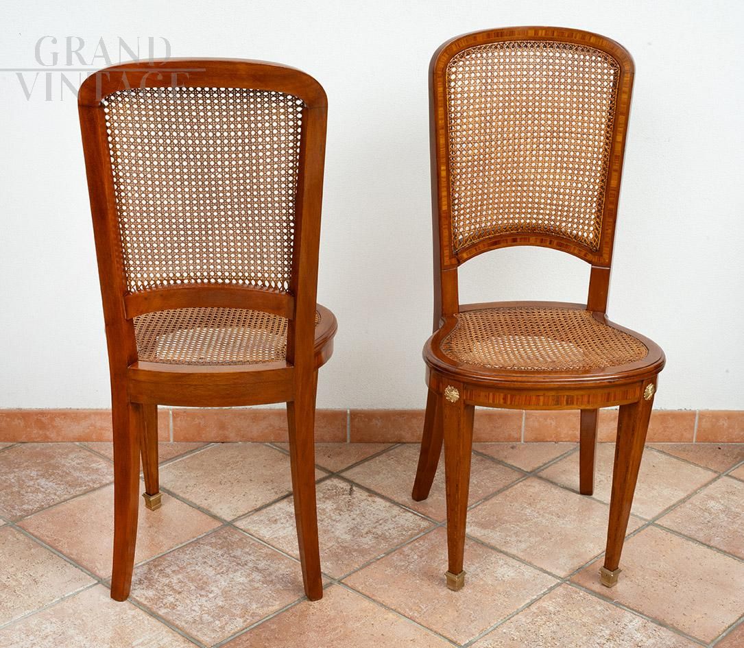 Set of four antique Napoleon III chairs in fine woods and Vienna straw
