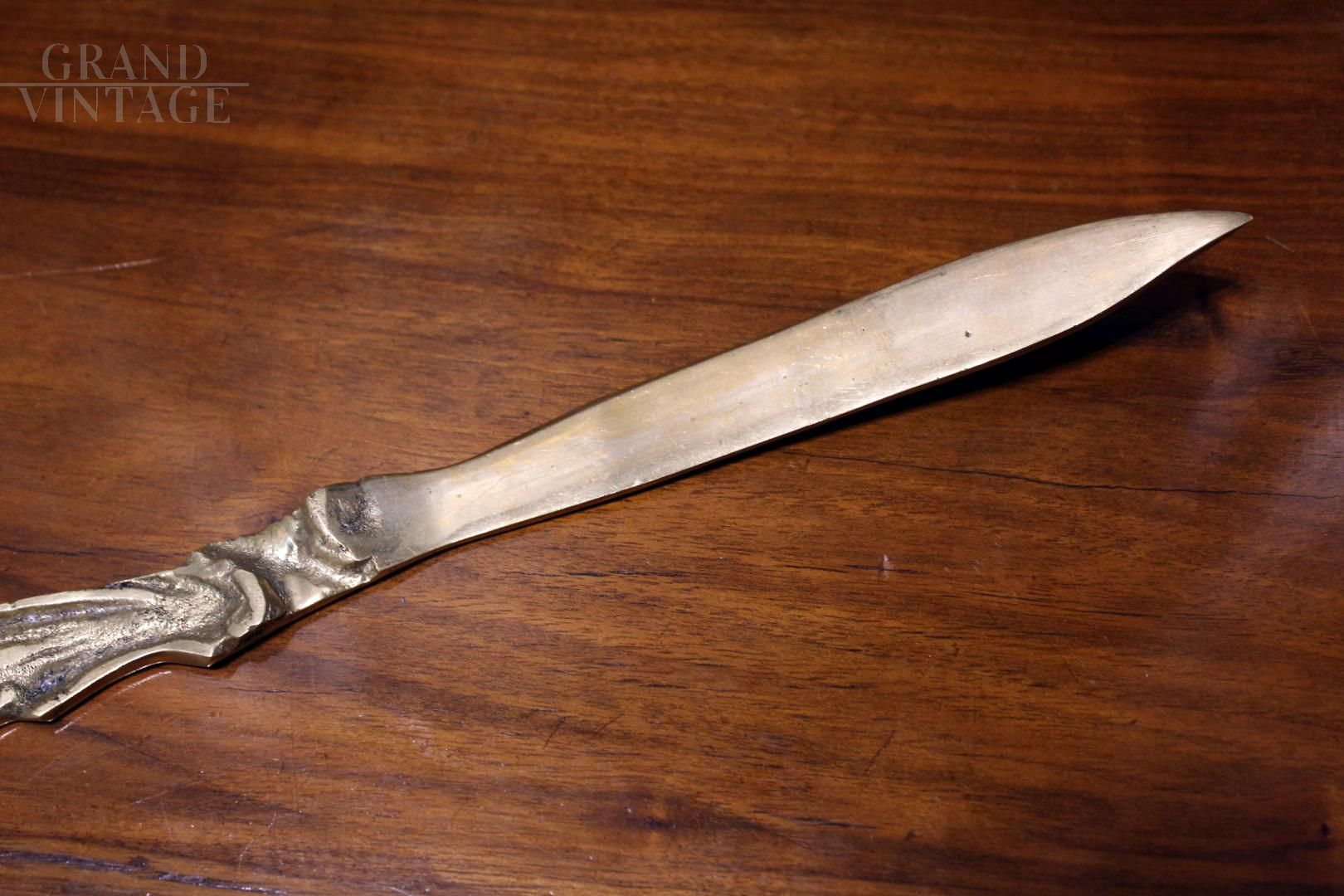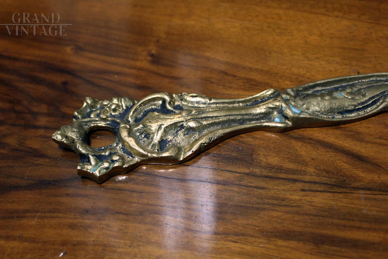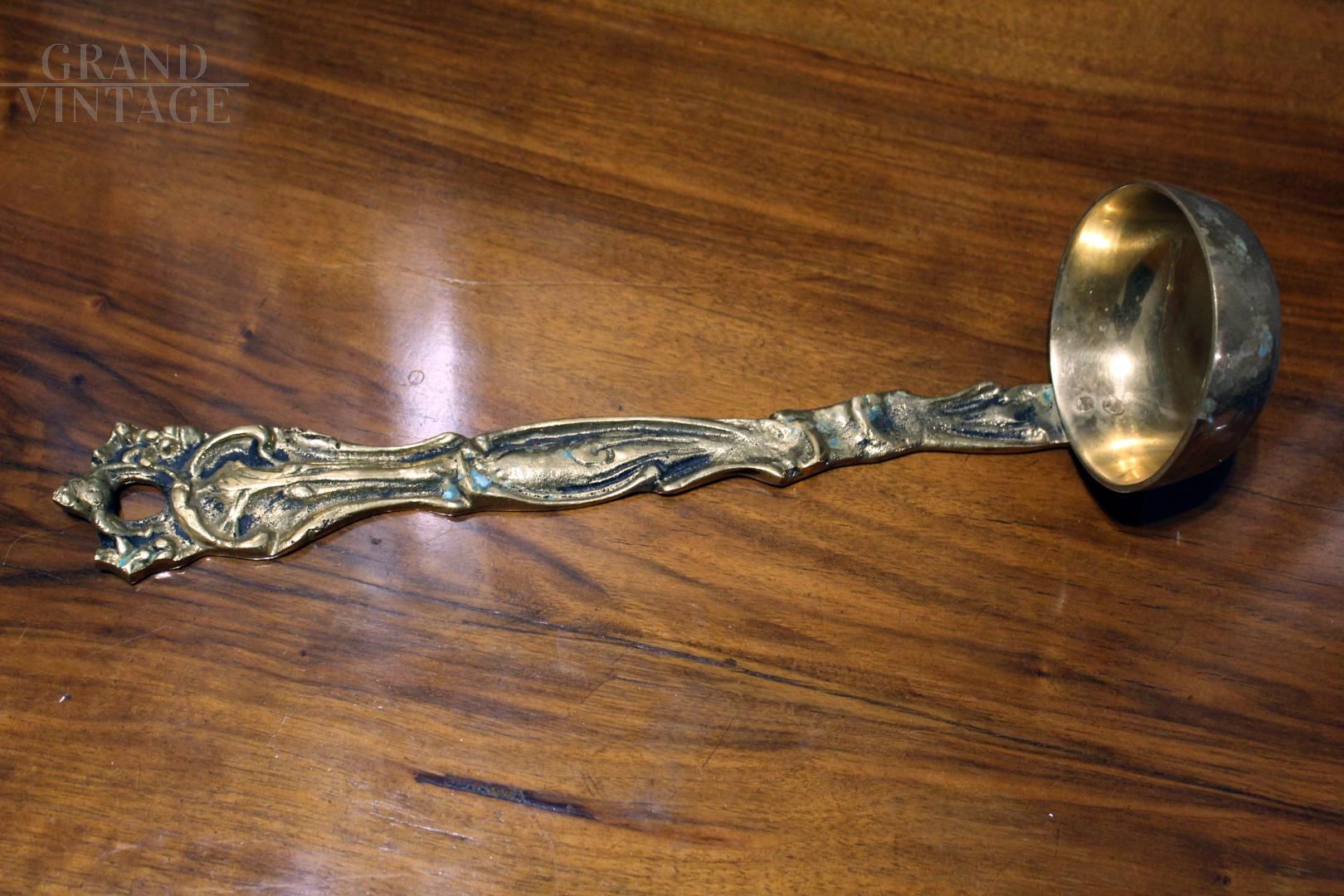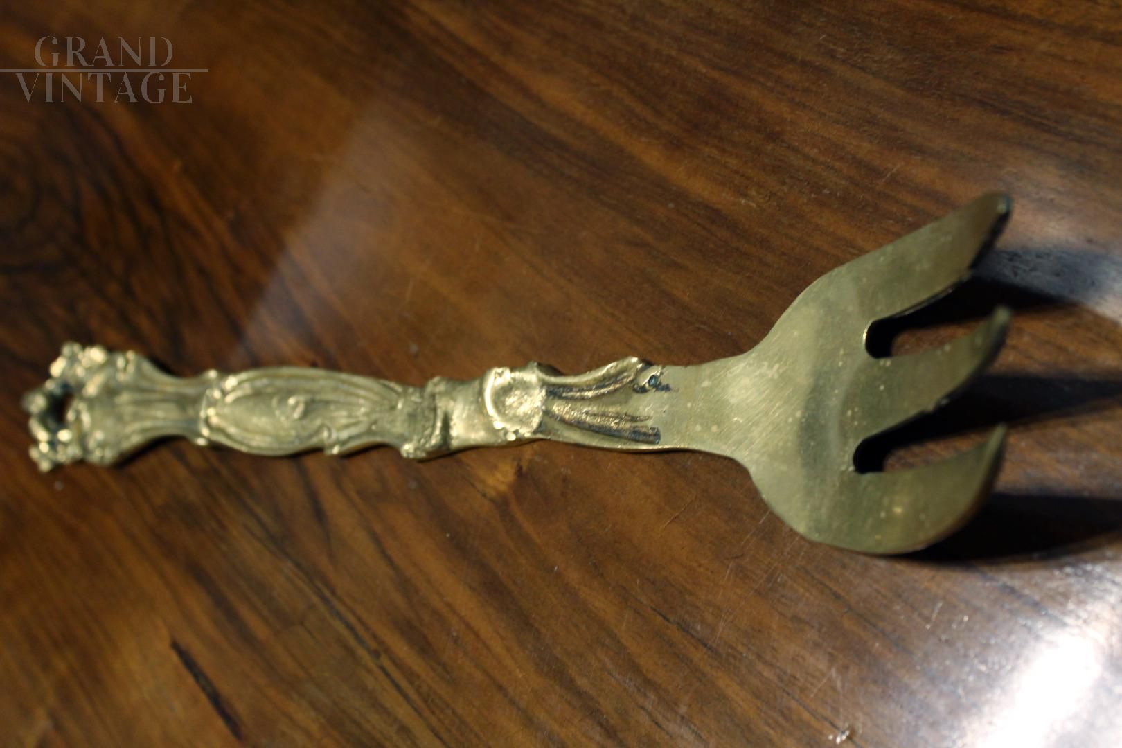 Set of large decorative brass cutlery, Italy from the 1950s, in excellent condition, perfect for furnishing a kitchen with good taste and elegance.