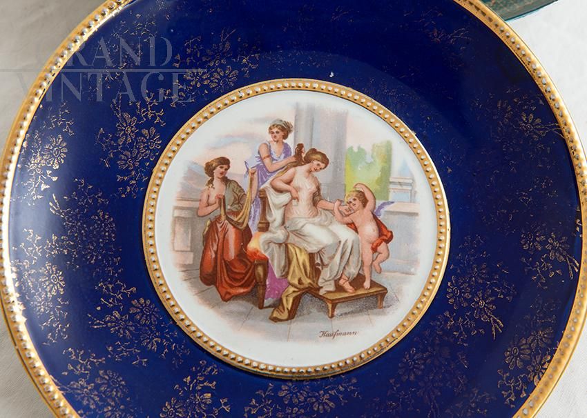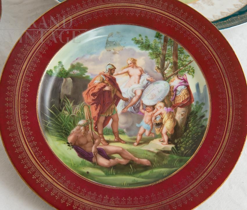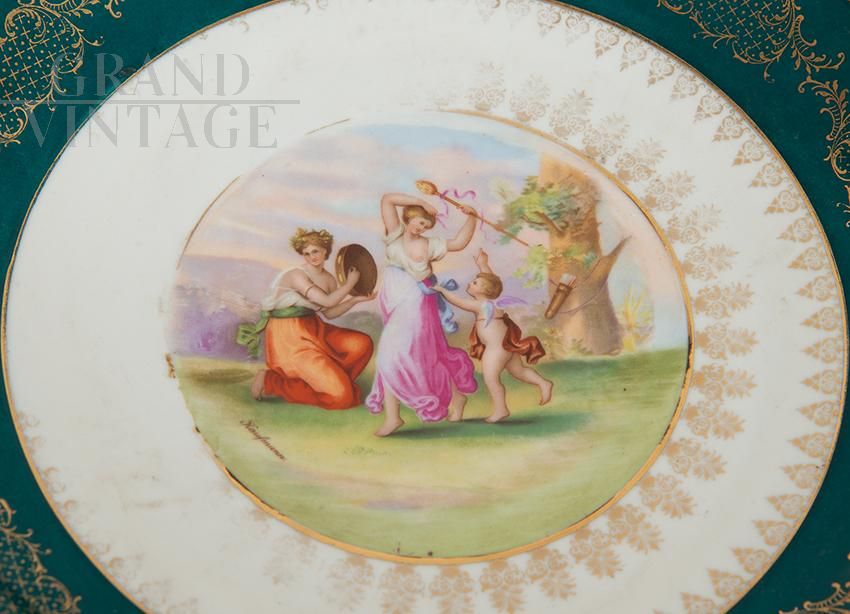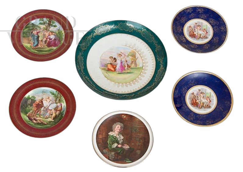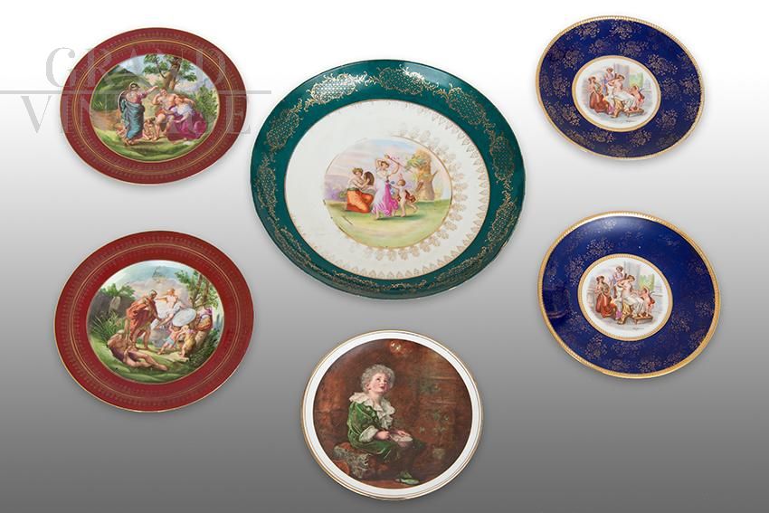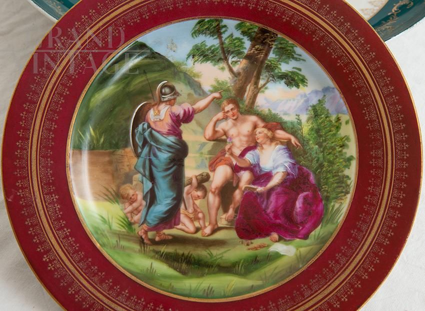 Set of six plates in Vienna polychrome porcelain signed A. Kauffmann