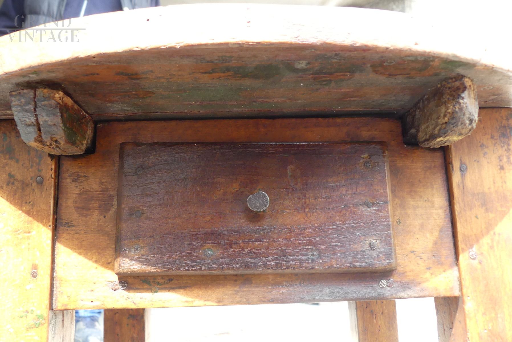 Beautiful Lombard small work table from a shoemaker of the mid-19th century. It has an undertop drawer and is built with mixed woods, including oak wood.