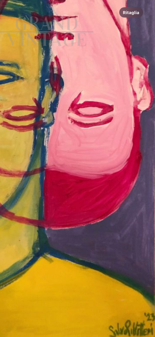 Painting created in 2023 with oil and tempera on canvas cardboard by the Sicilian artist Salvo Pillitteri (1979). An artwork with well-defined lines capable of blending the Urban art of the 80s with the modern and contemporary canons of today. Painting with certification of originality signed by the artist.