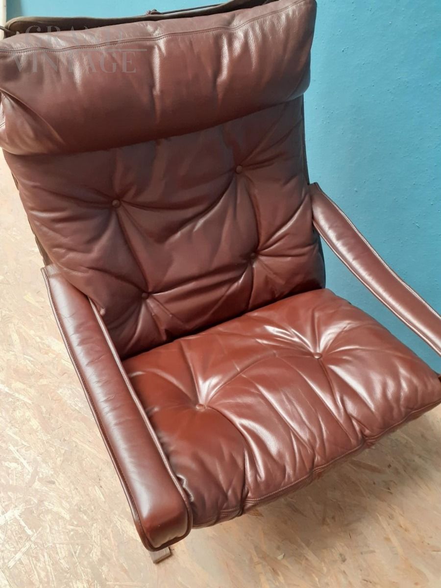 Siesta armchair in brown leather, design by Ingmar Relling for Westnofa.