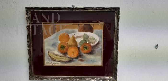 Painting with oil technique on a tablet by the painter Vittorio Gussoni (Milan 1893 - Sanremo 1968). Subject: still life.