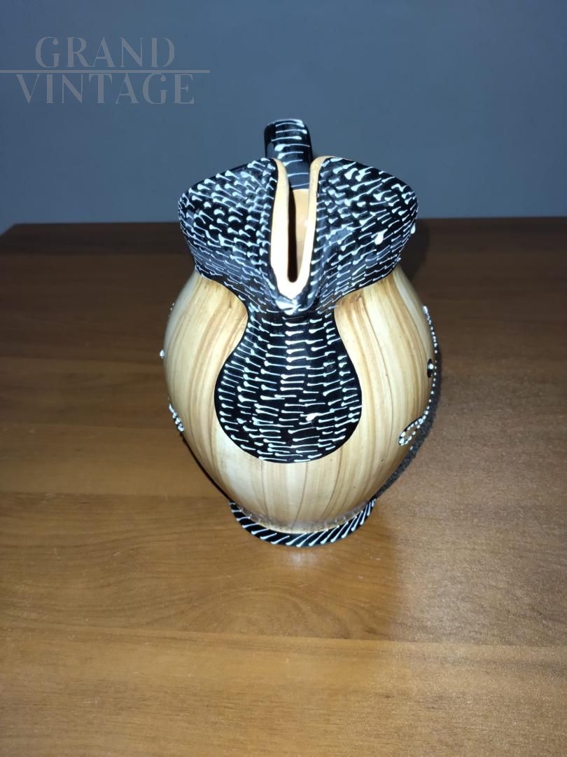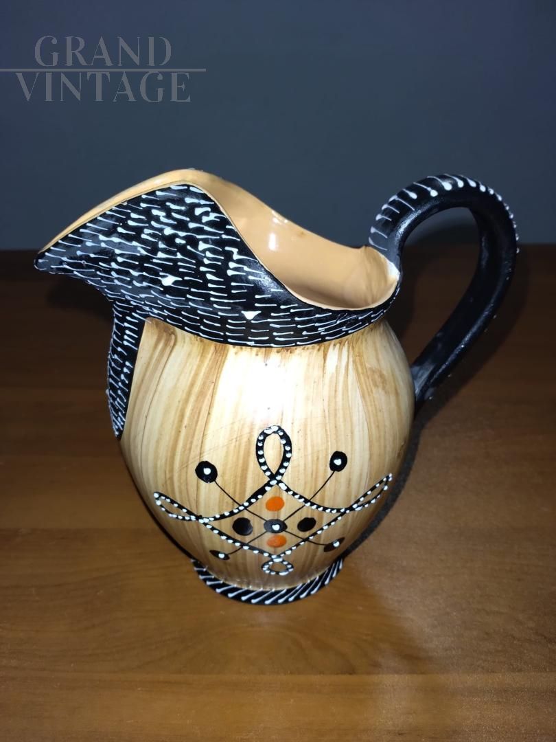 Beautiful small Deruta ceramic jug from the 1970s by Fima, small in size, reflects the taste of the time. The jug is healthy and very beautiful and has no cracks or chips. It is completely hand painted.