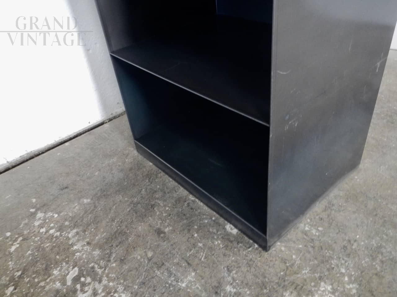 Small industrial style open bookcase in black iron with 4 fixed shelves. The space between shelves is 28 / 29 cm. In good condition. 5 pieces available, the price refers to the single piece.