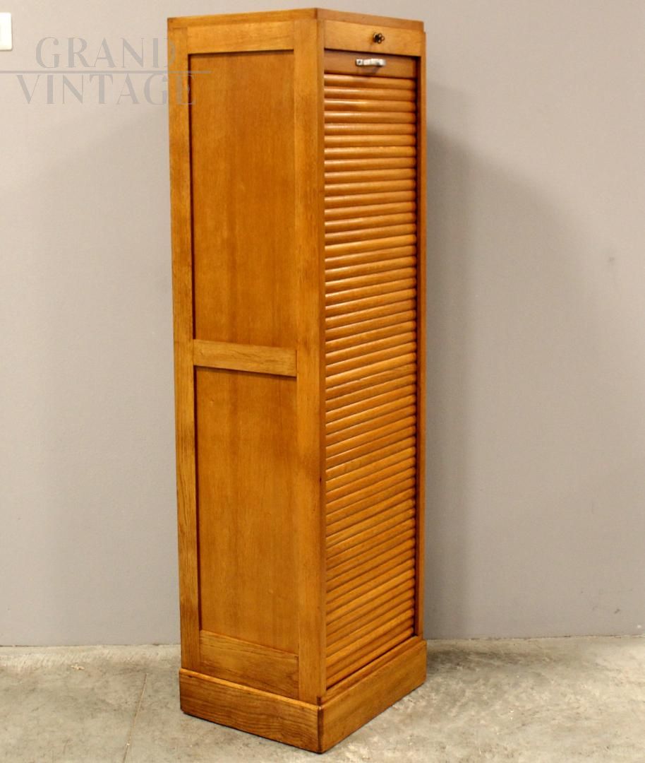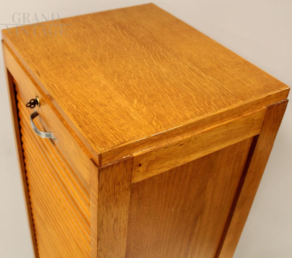 Single roller shutter small office bookcase or filing cabinet in oak from the early 1900s, restored.