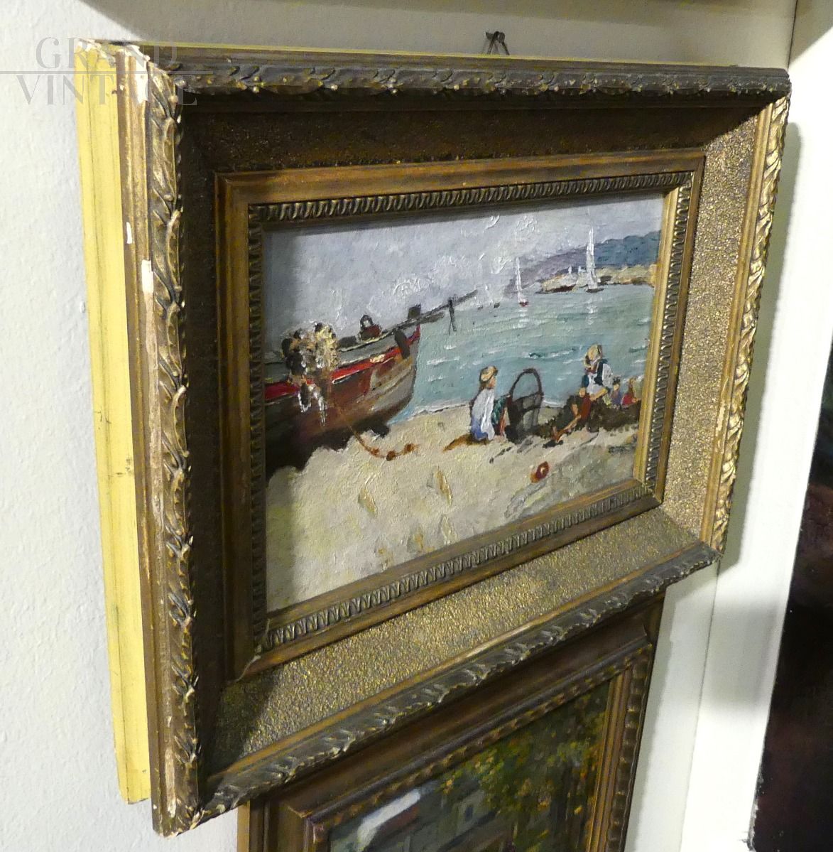 Piccolo dipinto con spiaggia e soggetti