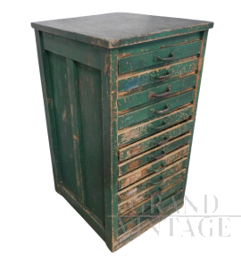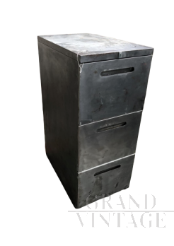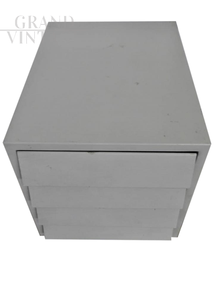 70's industrial vintage chest of drawers in gray lacquered metal, with 4 drawers.
