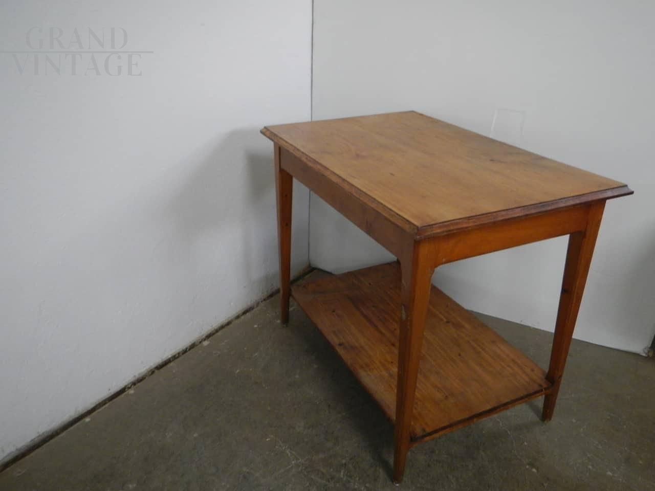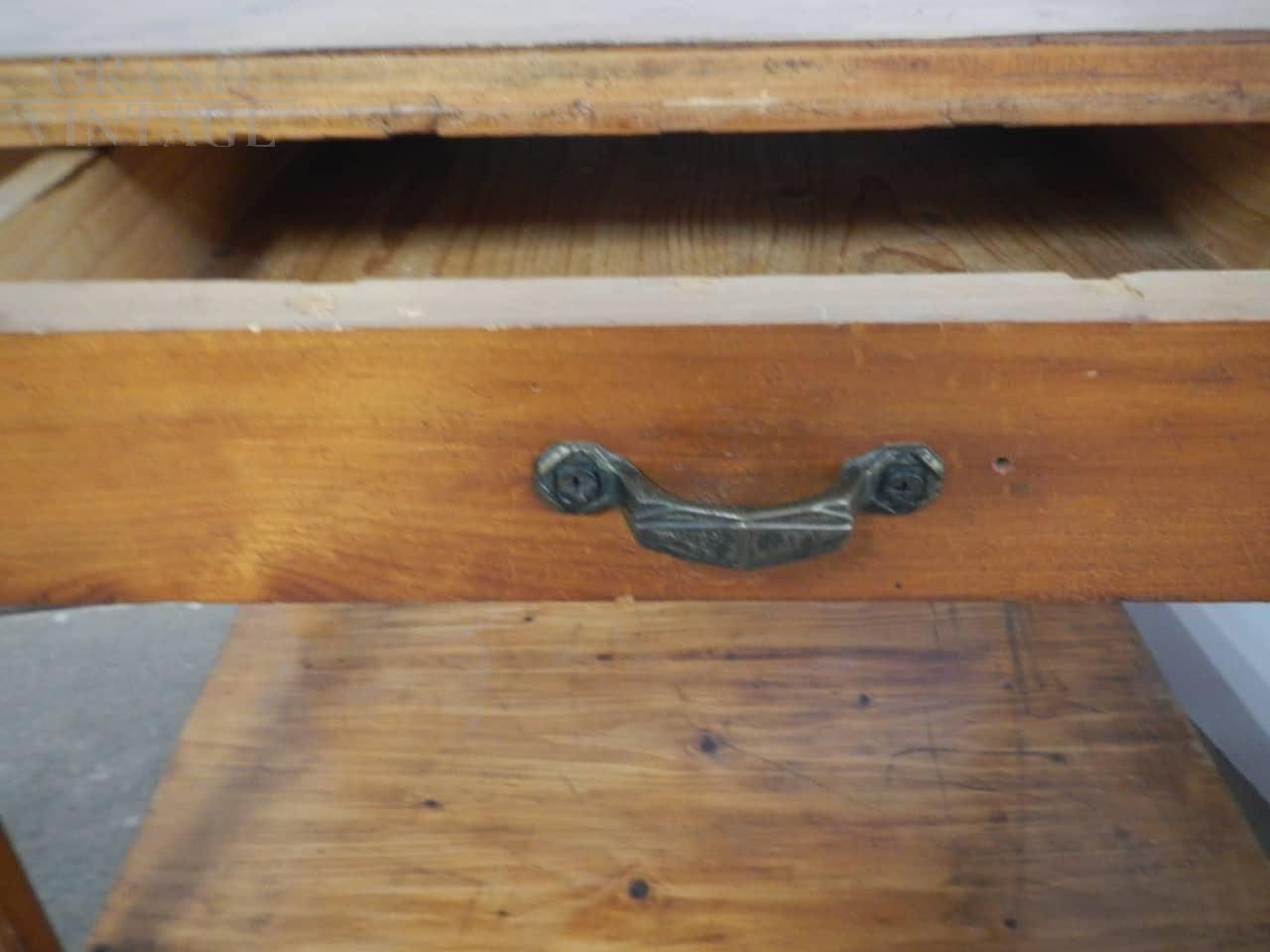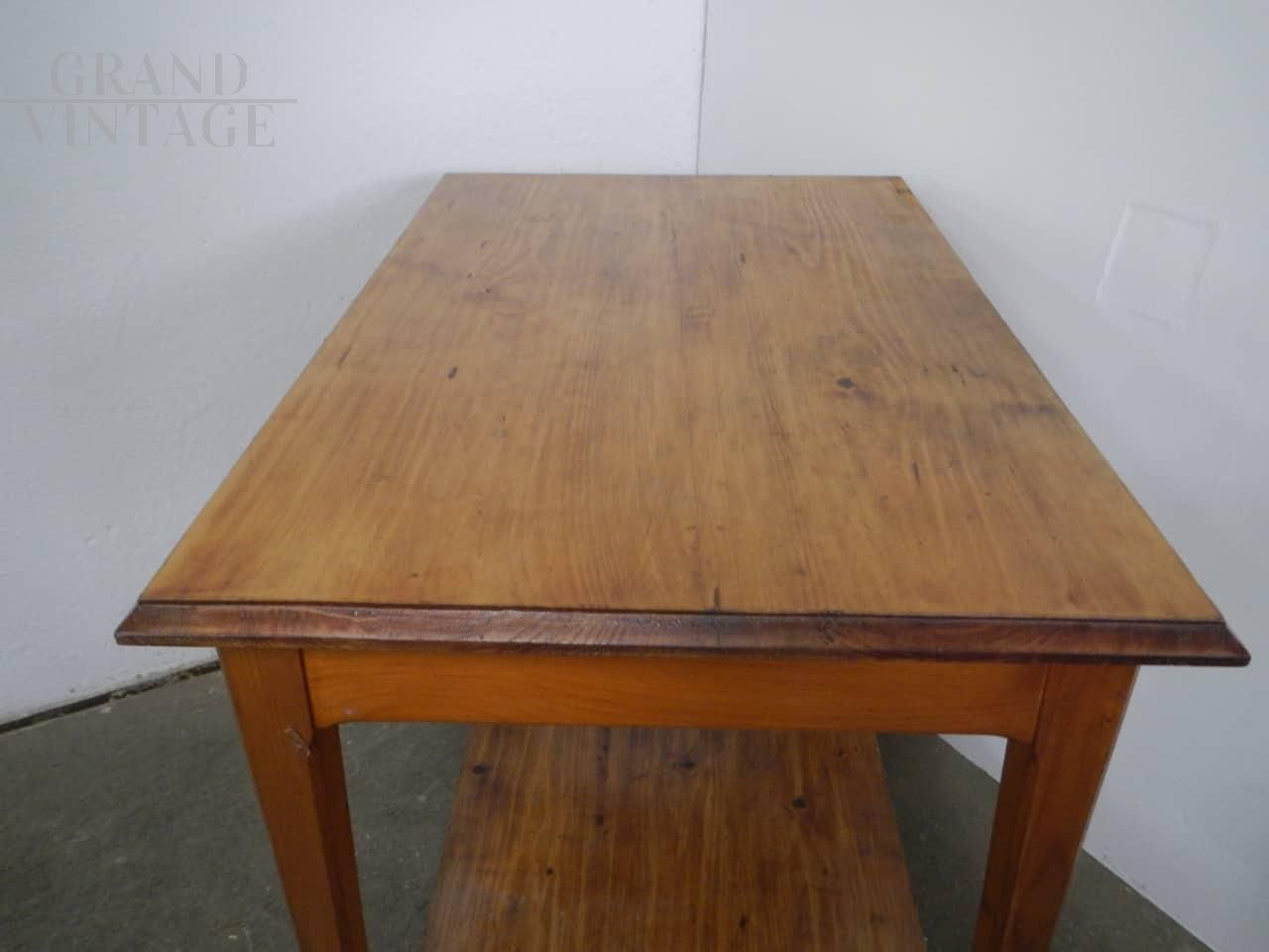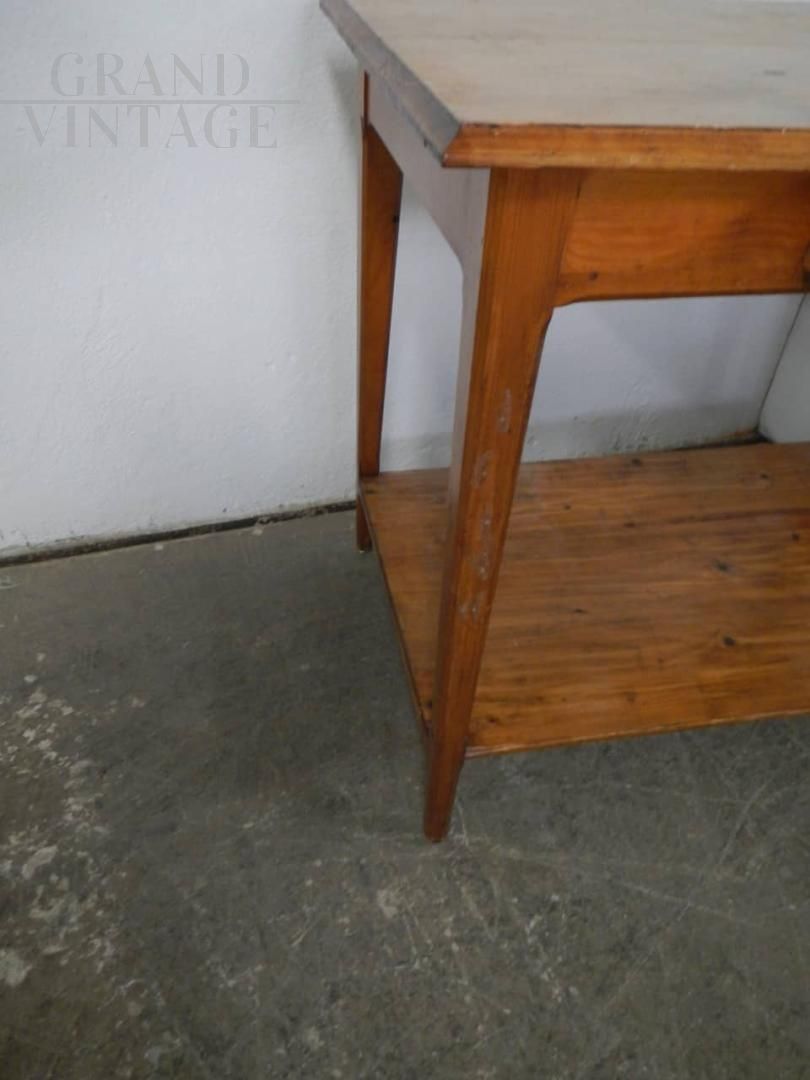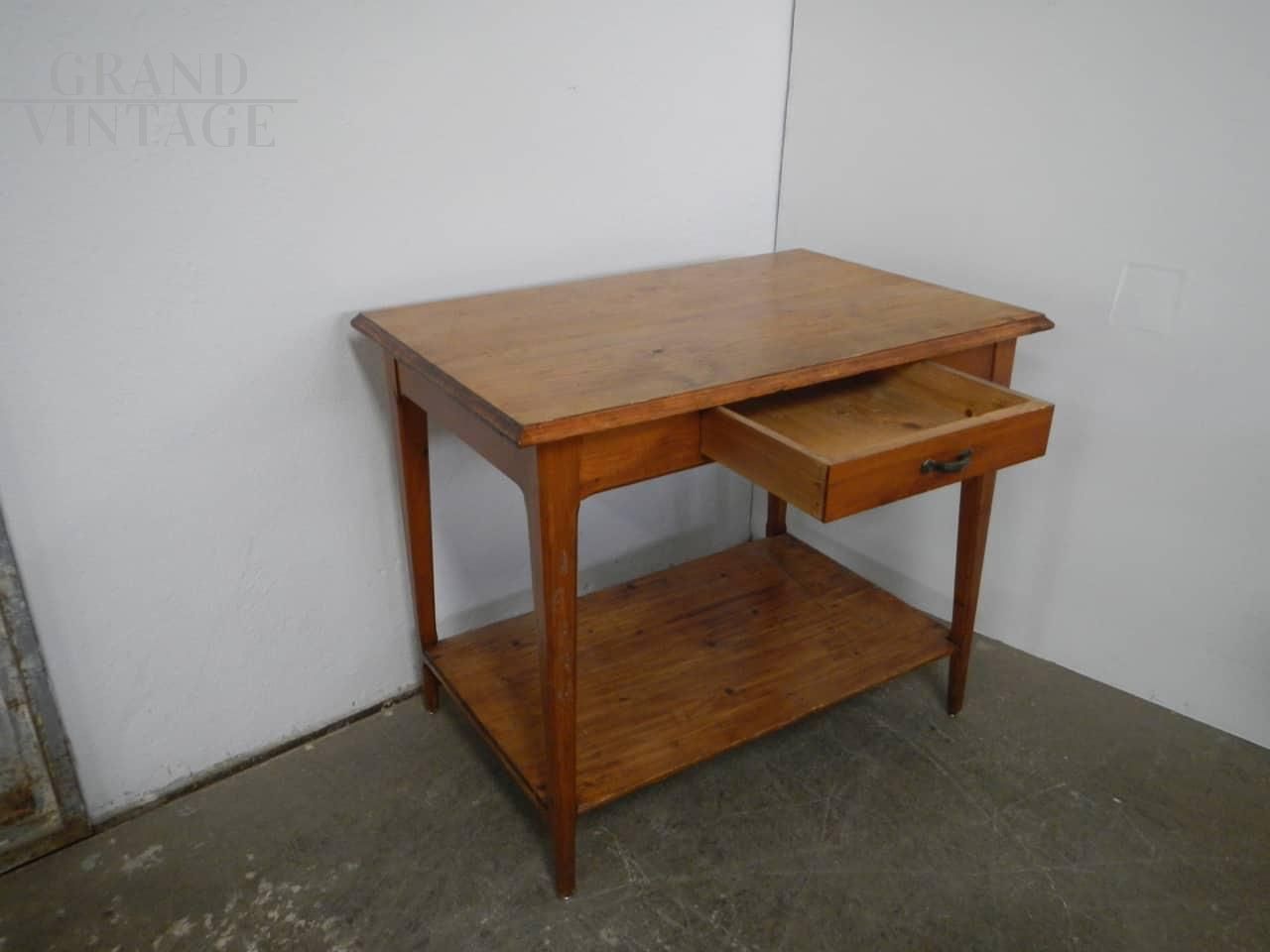 Small vintage table or writing desk in natural fir with shelf and one drawer measuring 35 x 47 x h 6 cm. The lower space in height is 50 cm.