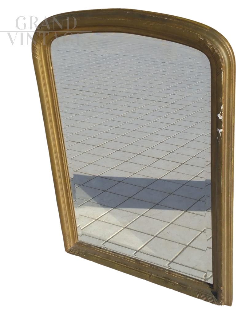 Beautiful gilded tray mirror from the second half of the 19th century in wood and plaster, some signs of wear due to age are visible, as shown in the photo.