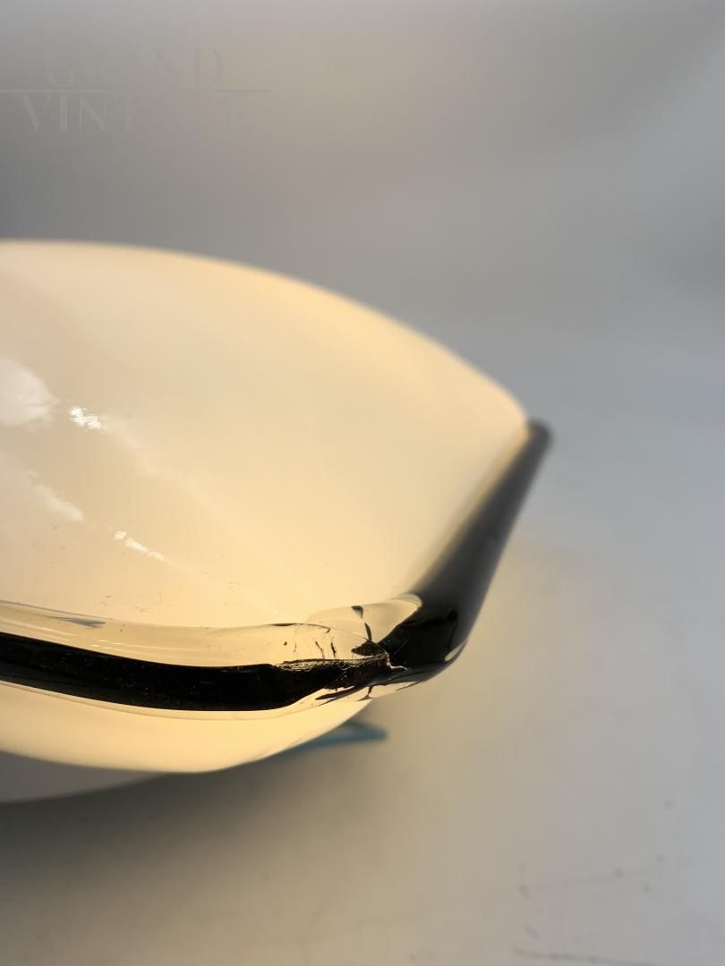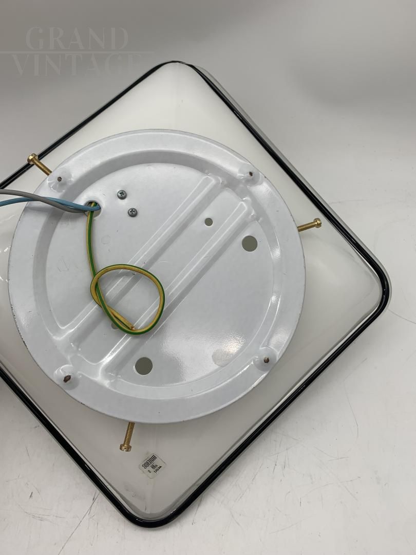 Fantastic square ceiling or wall lamp in Murano glass attributed to the Venini company. Glass handmade on a mold by Murano masters. White glass with black edge. On the glass it has the stamp 023. Supporting structure in white painted iron. It can be a ceiling or wall lamp. Inside there is a lamp holder and 27. New electrical system.