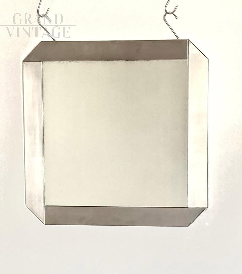 Vintage square mirror designed by Valenti in brushed steel, Italy 1970s, produced by the Valenti company. Polished frame, in excellent condition with small signs of aging.