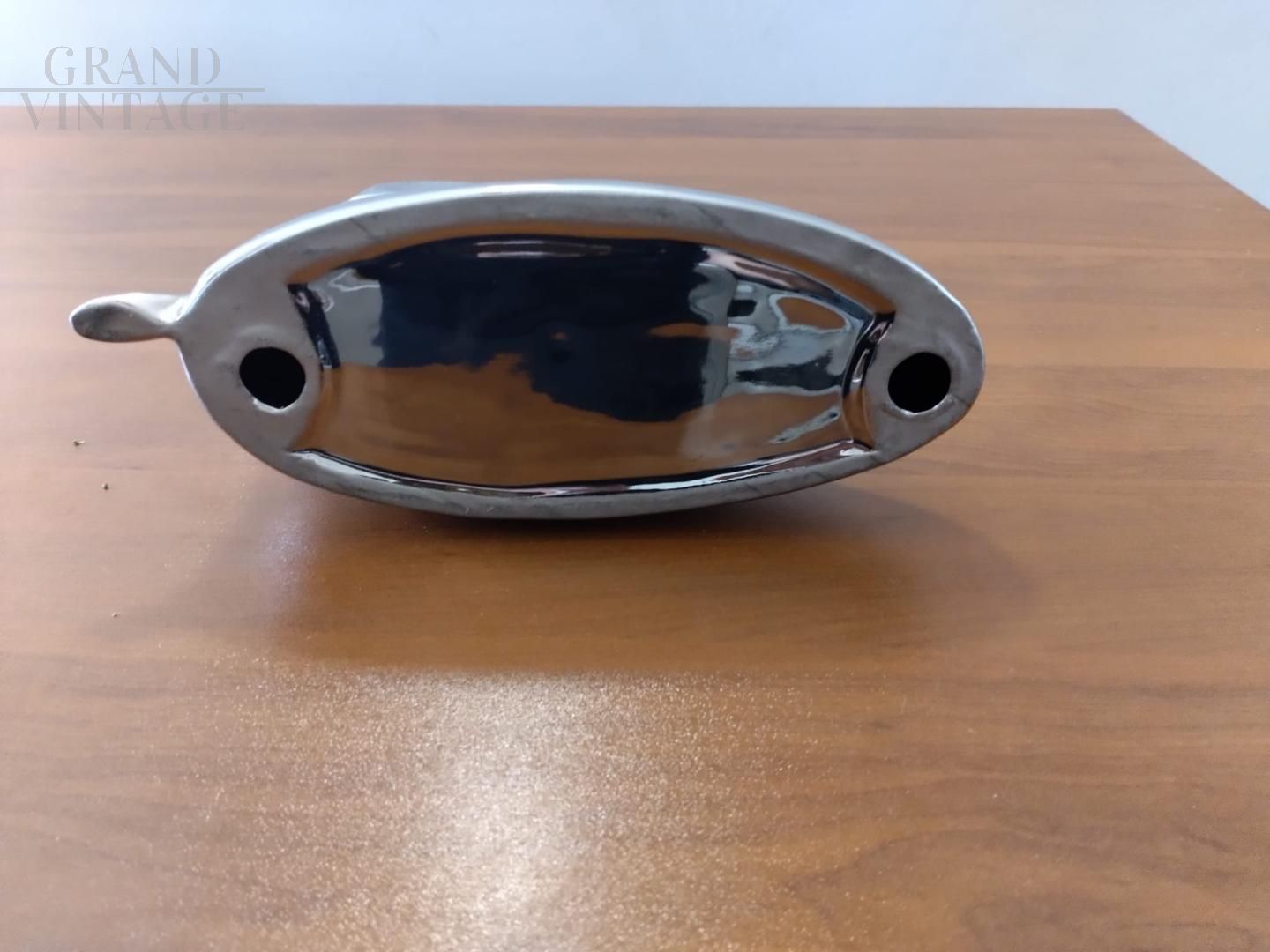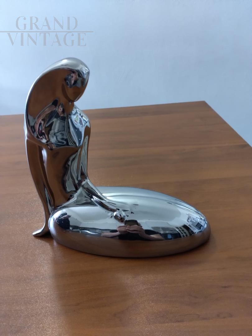 Beautiful vintage silver ceramic figurine depicting a little mermaid on a rock. Perfect conditions.