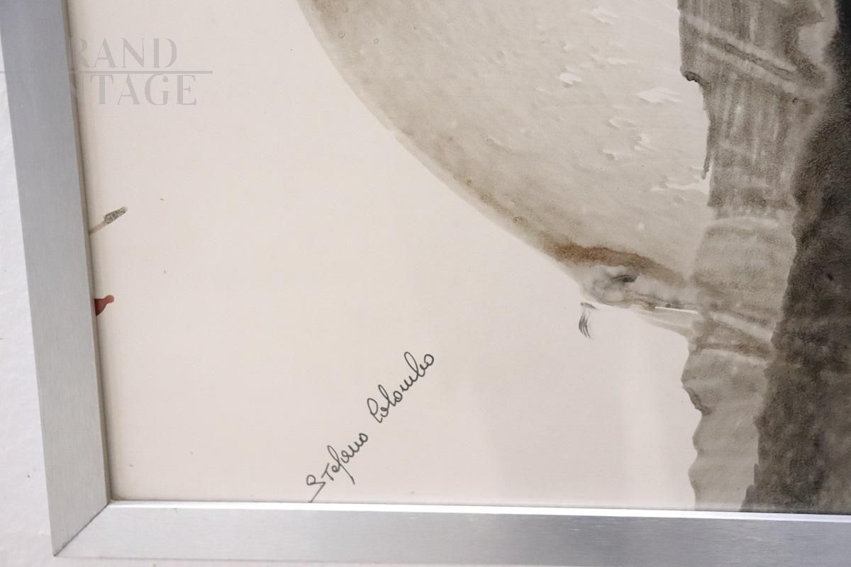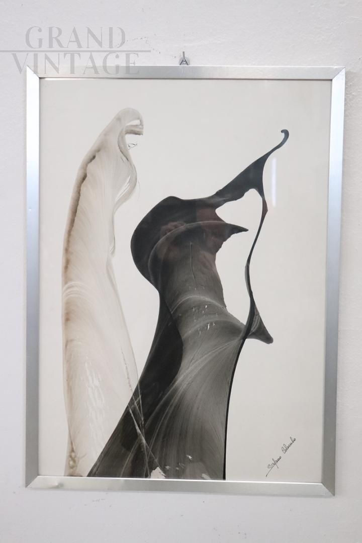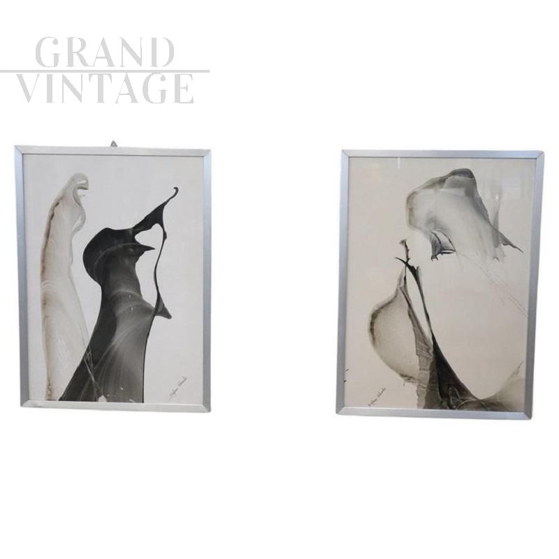 Beautiful pair of abstract paintings in tempera on paper by the Italian artist Stefano Colombo, signed on the front, dating back to around the 1970s, complete with frame. Perfect for modern furnishings, offered at a negotiable price.