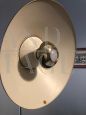 Original Stilnovo design floor lamp from the 1950s with two-stem structure in cream-coloured lacquered metal, lampshade and rocker in red lacquered metal, brass details and marble base. In excellent condition, with original cable and switch, complete with sticker inside the lampshade, has light abrasions on the balance.