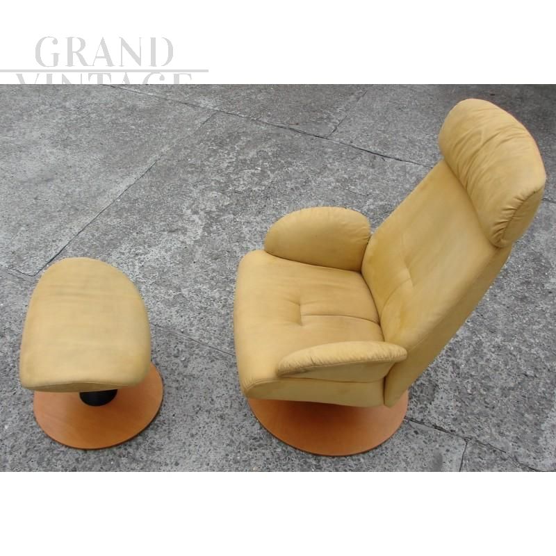 Very comfortable vintage armchair by the Stordal company, mid-century Norwegian, with footrest ottoman, 1970s. Preserved in good condition.