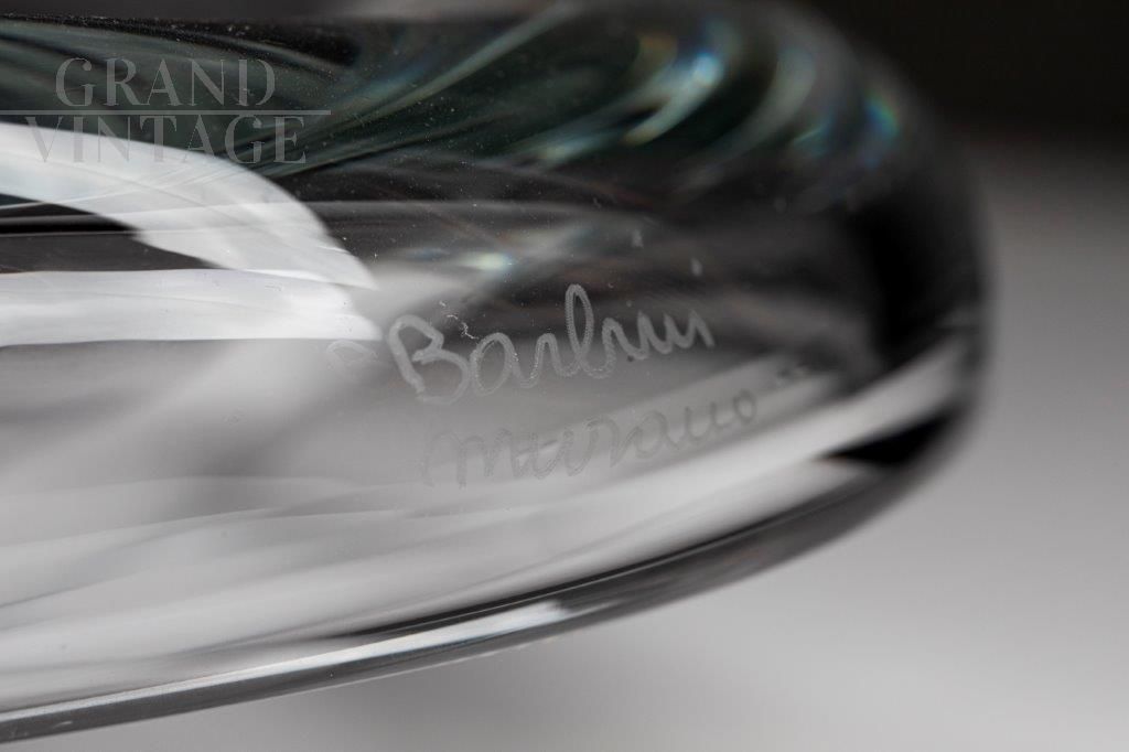 Pocket coin tray ashtray by Alfredo Barbini in transparent Murano glass, signed on the side.