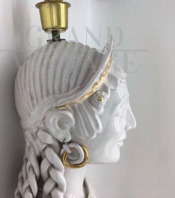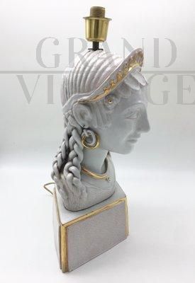 Mid-century ceramic table lamp with bust of a Greco-Roman woman with gold details, 1950s.