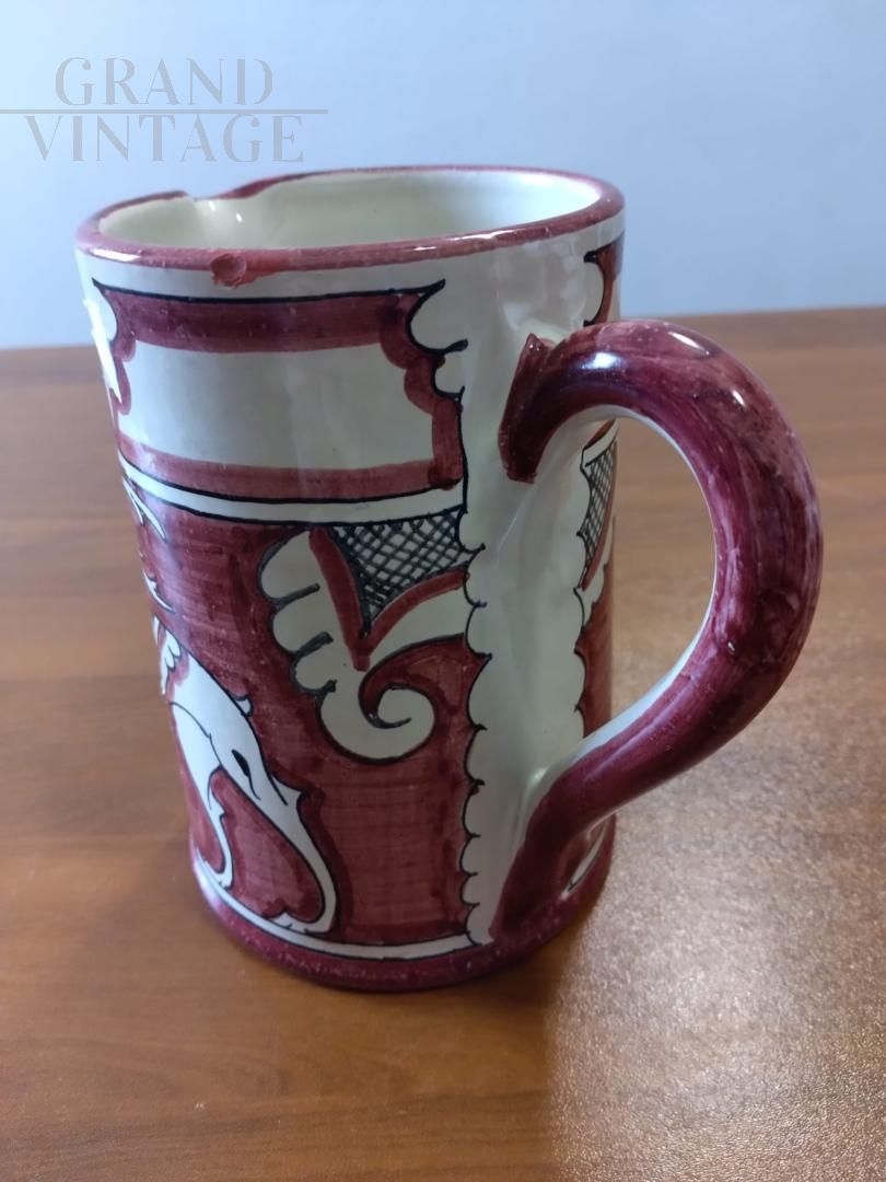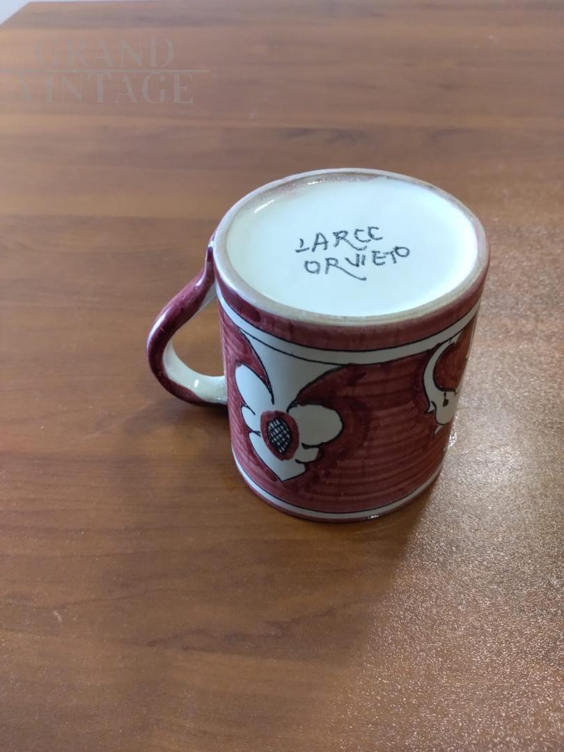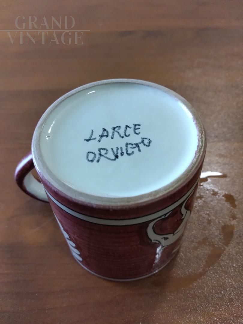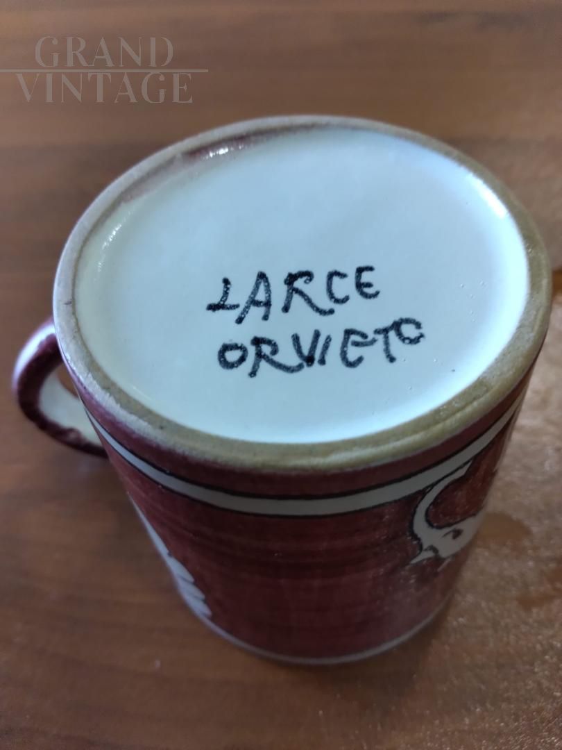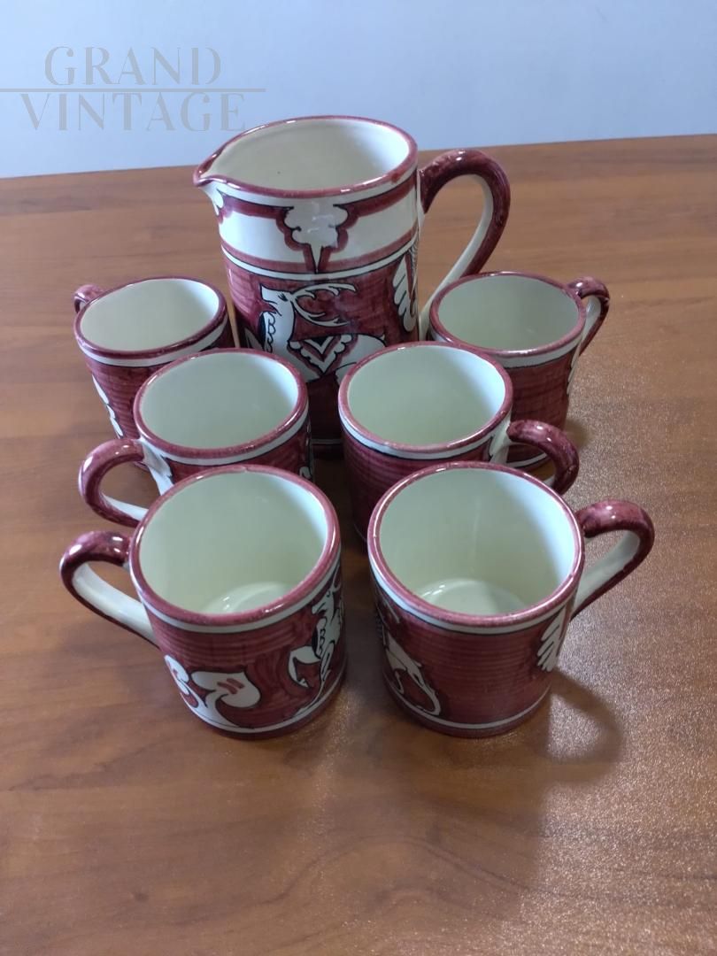 Vintage ceramic jug with 6 mugs by L.Ar.Ce Orvieto