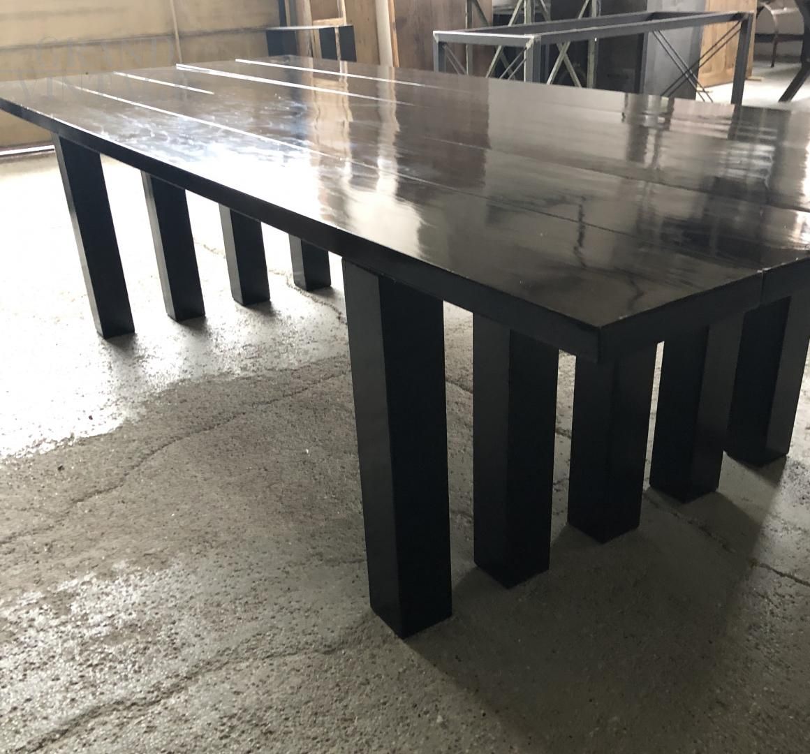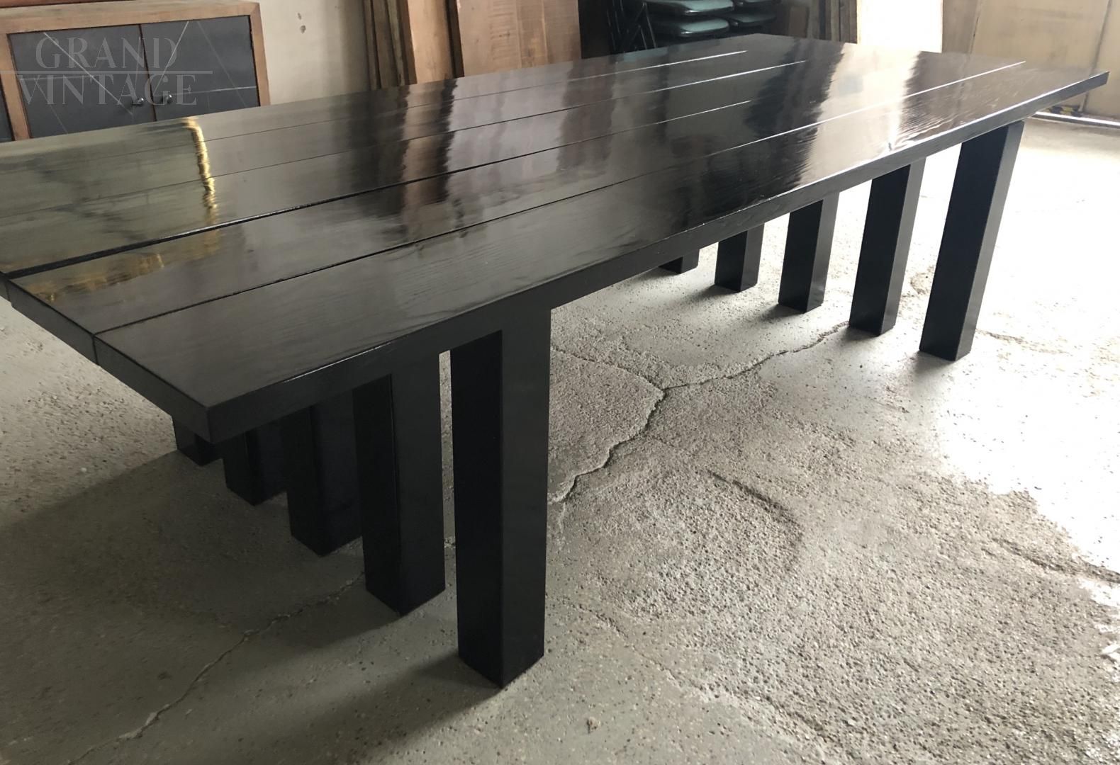 Meeting table from the 60s / 70s, in oak wood. The legs and the top are made of black oak veneer slats.