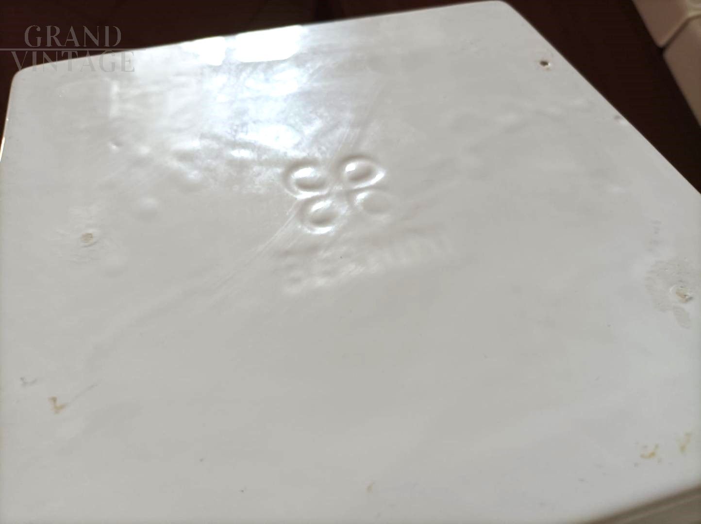 Italian Mid Century table model 611 designed by Silvio Coppola for Bernini, 1970s. The table is made of veneered walnut, the top has a removable insert for inserting 4 original white ceramic containers marked Bernini on the bottom. In excellent condition, with minimal traces of use.