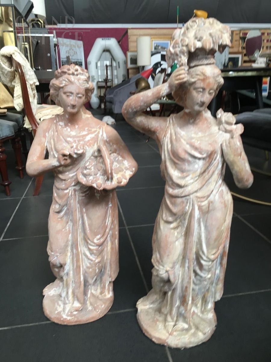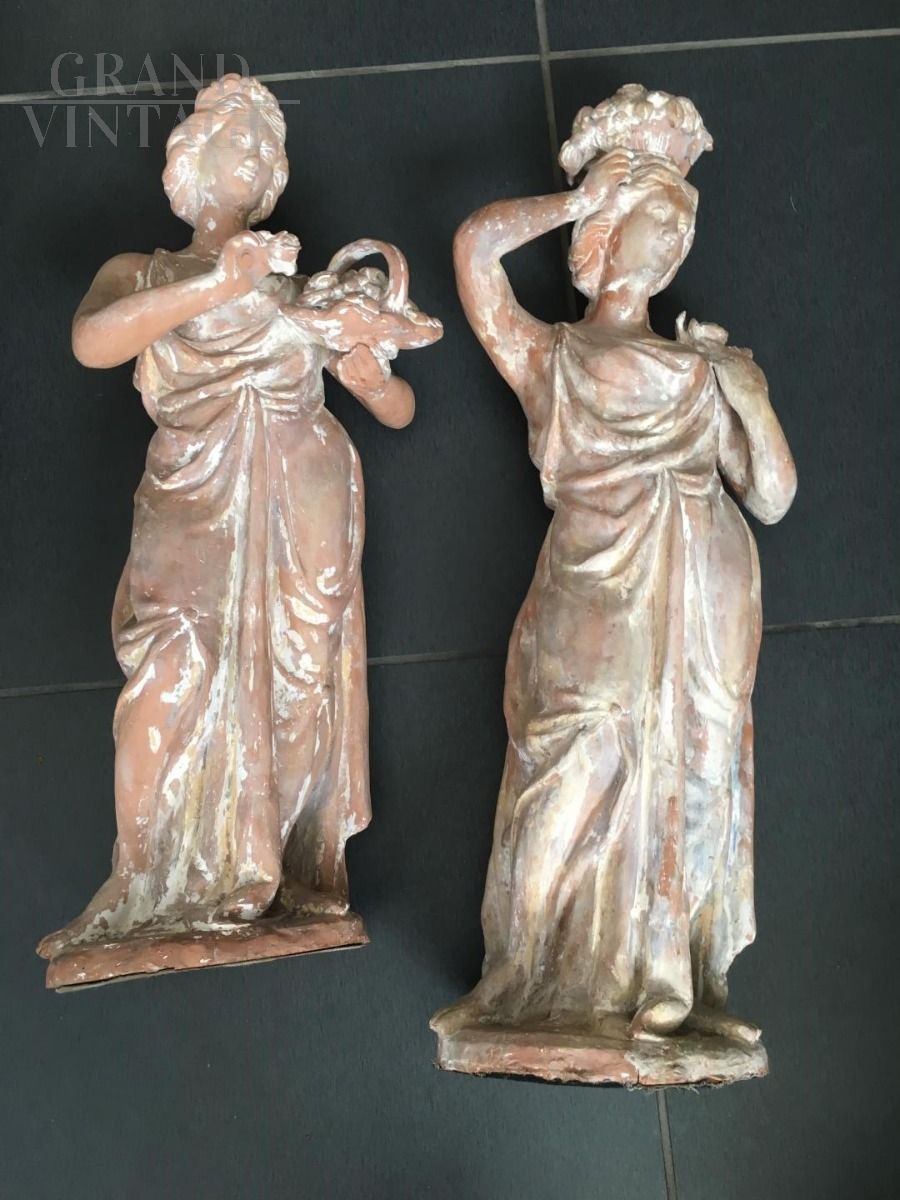 Pair of terracotta sculptures of Tuscan production, very decorative, ideal for embellishing a classic but also modern environment. In good condition, presumably from the 70s of the last century. Slightly different sizes.