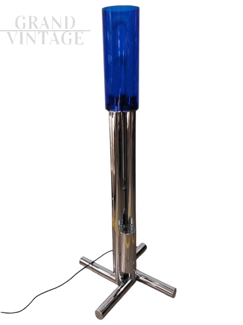 Tetralogy floor lamp by Gabetti and Isola in steel and blue acrylic glass