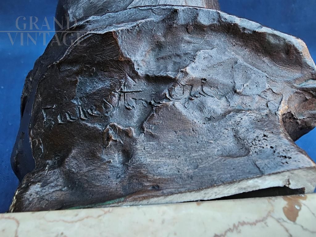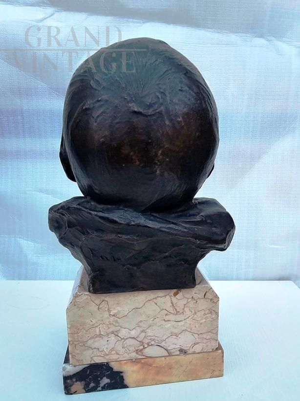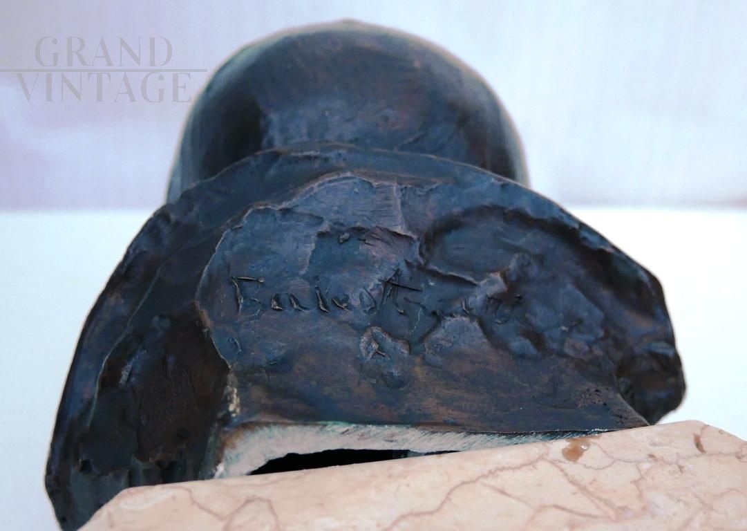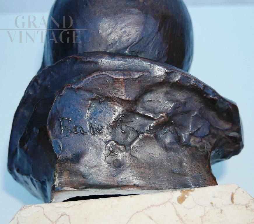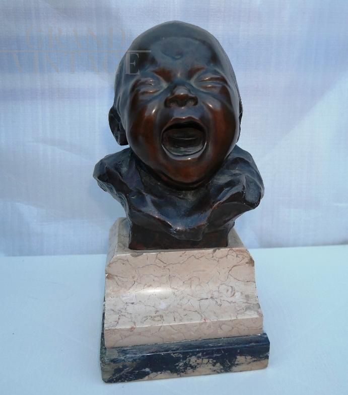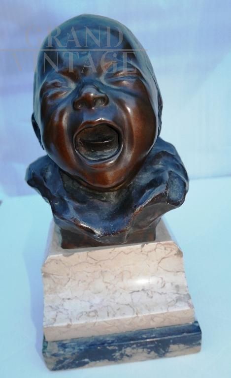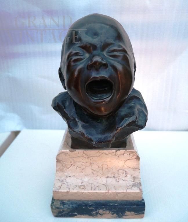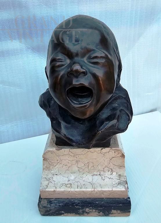 The infant's cry - Bronze sculpture depicting a small crying child's head on a marble base, signed on the back Balestrieri Bernardo, Palermo 1884-1965. Period 1920s / 1930s. In perfect condition.