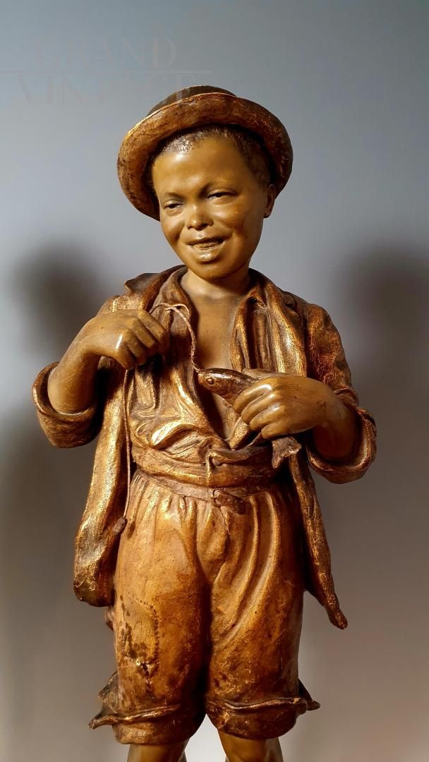 Pair of terracotta sculptures by Friederich Goldscheider depicting two moor kids, one rich and one poor. The sculptures are signed and in excellent condition.