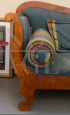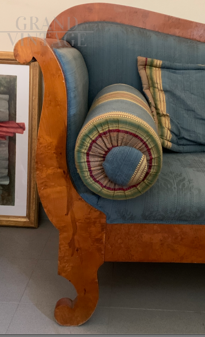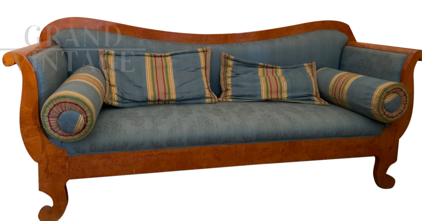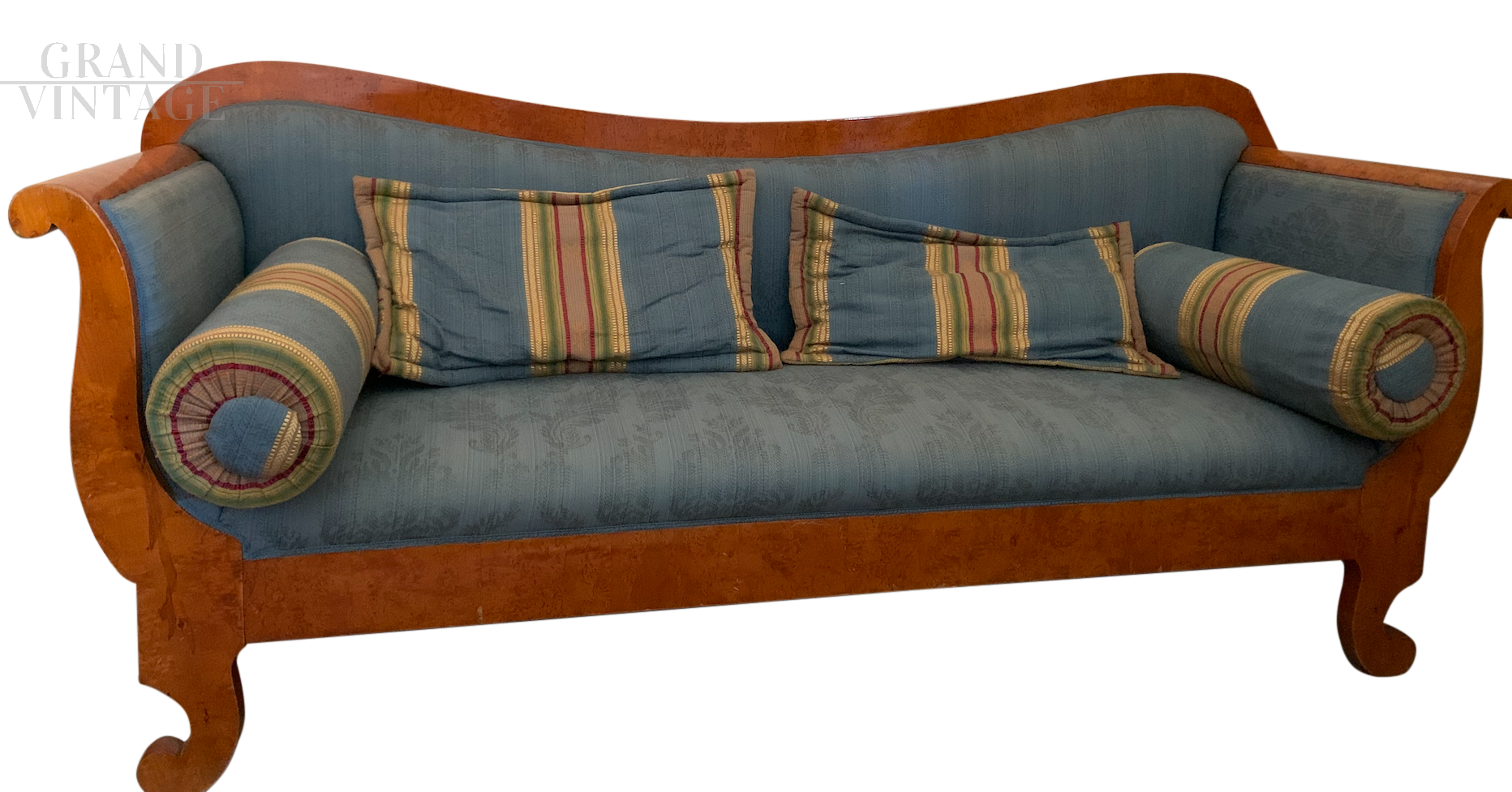 3 seater Biedermeir sofa, with wooden structure with elegant wavy shapes. In good condition.