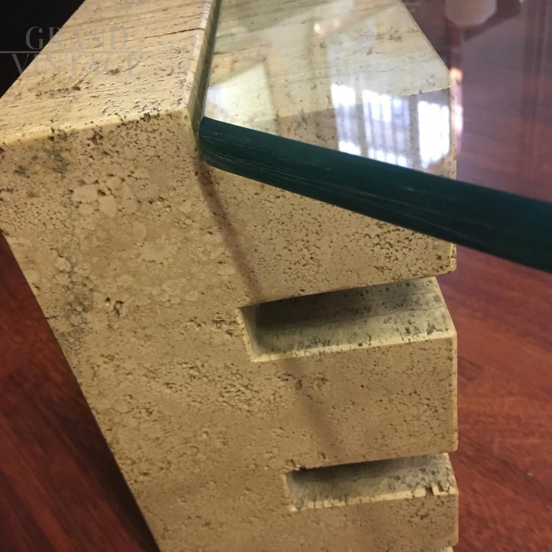 Travertine and Glass Coffee Table - 1970s - Silvana Bertoldi for Citterio Meda
