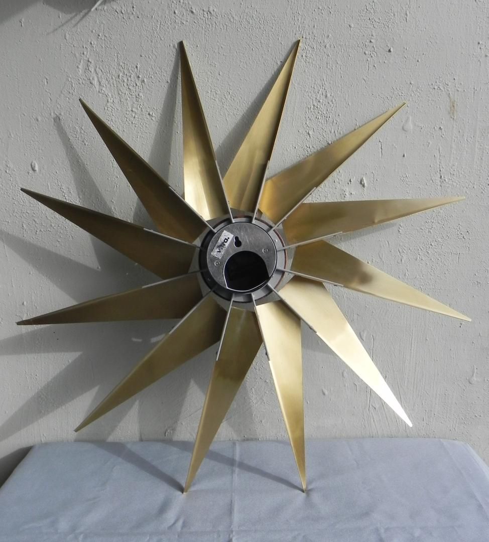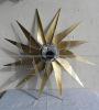 Vintage Turbine style clock designed by George Nelson for Vitra, made in the 1990s with a central element covered in fine wood and solid brass spokes. The watch shows natural signs of use and some defects on the spokes.